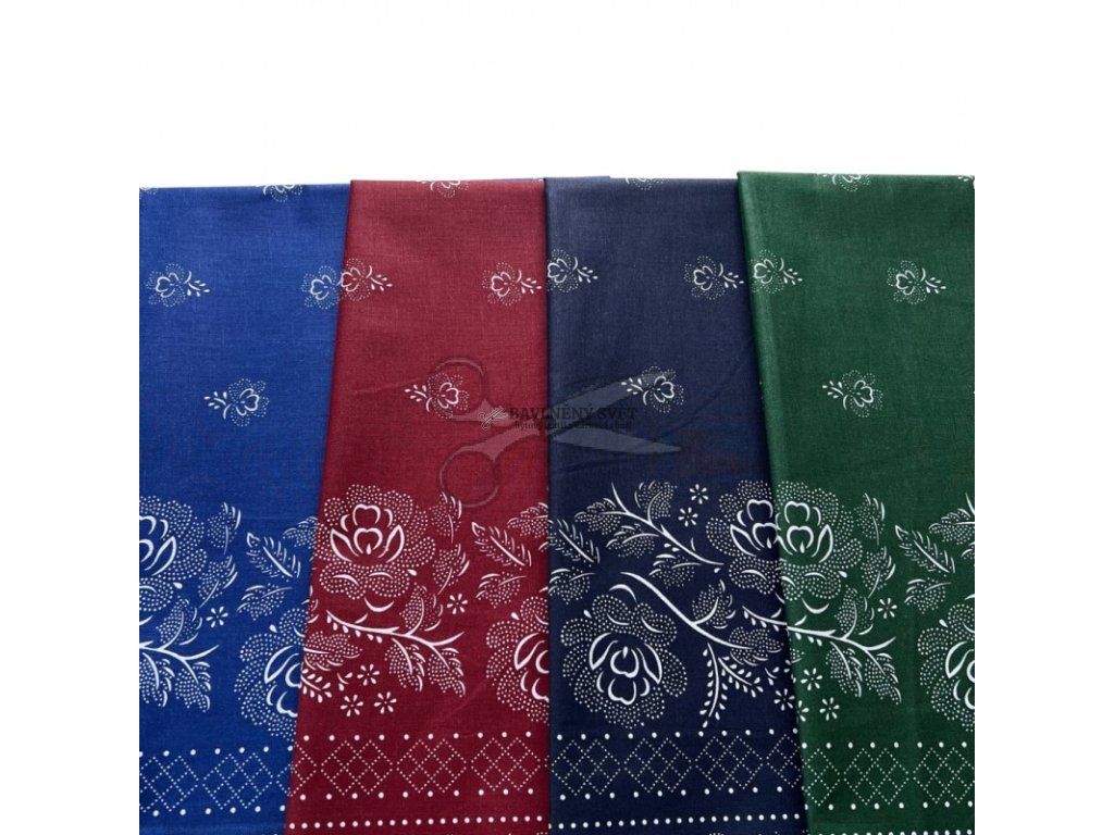 Co všechno v balíčku najdete a co z něj vytvoříte? Balení obsahuje 4 kusy látek o rozměru 100 cm x 140 cm v barvách: modrá, vínová, námořnická a tmavě zelená. Tato metráž je perfektní pro patchwork, šití dekorativních polštářů, chňapek, látkových sáčků na pečivo nebo ubrusů. Díky borduře (ozdobnému lemu na okraji) látka vynikne především na tradičních zástěrách, spodních lemech, kterým dodá punc poctivé ruční práce. Látka je pevná, prodyšná a velmi příjemná na dotek, což oceníte vy i vaše děti při každodenním používání.