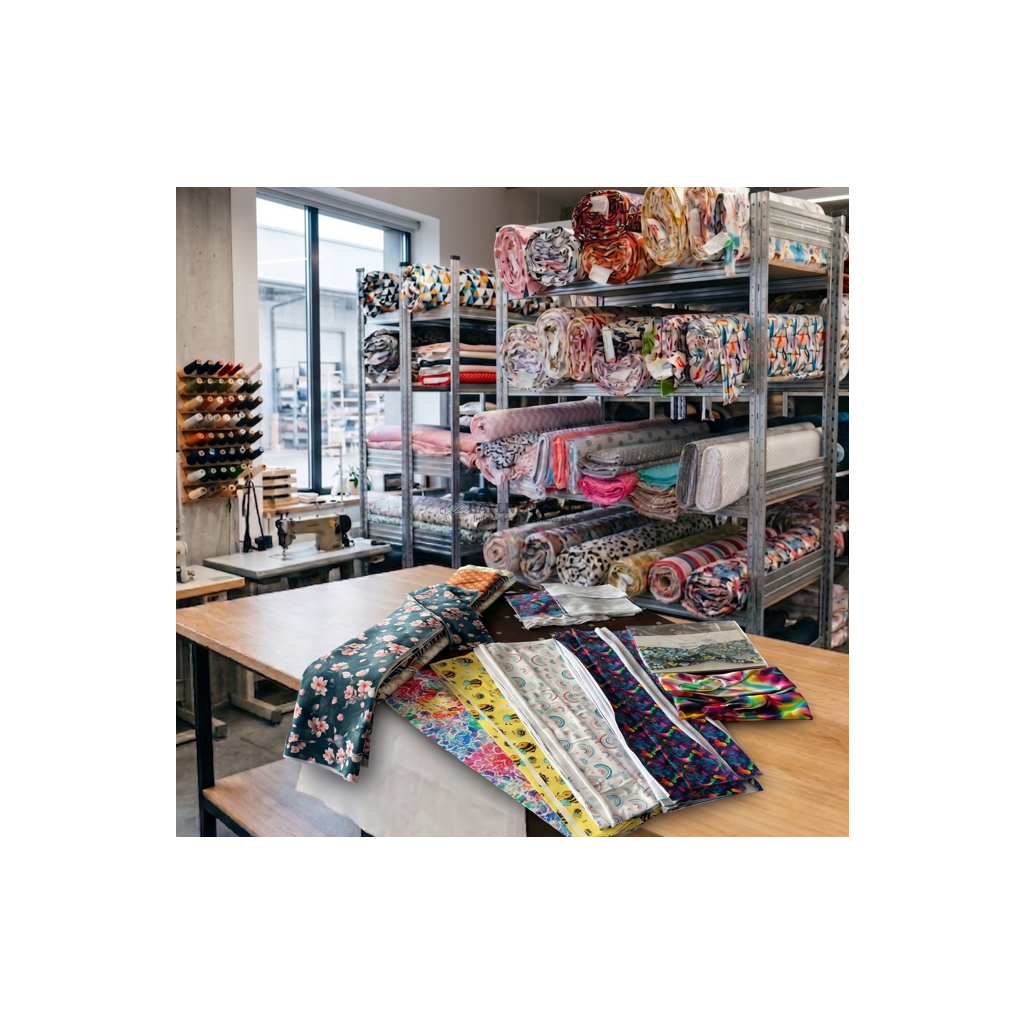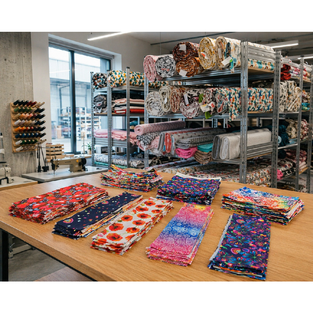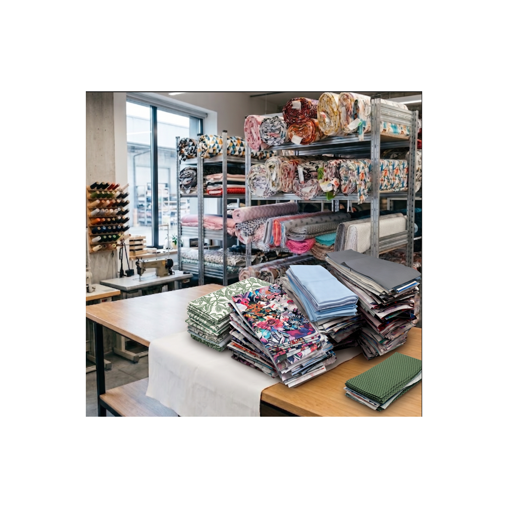 Jedná se o úplety (hladké i žebrované) s kvalitními tisky. V balíčku můžete najít také několik jednobarevných látek a v menším množství i teplákovinu.