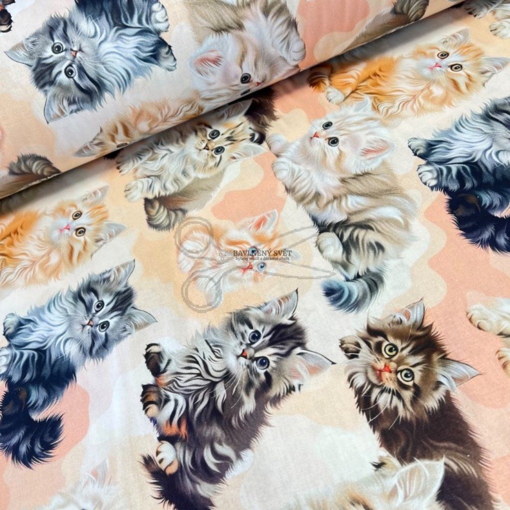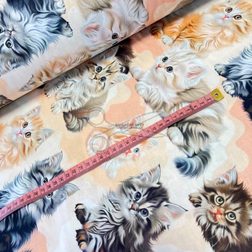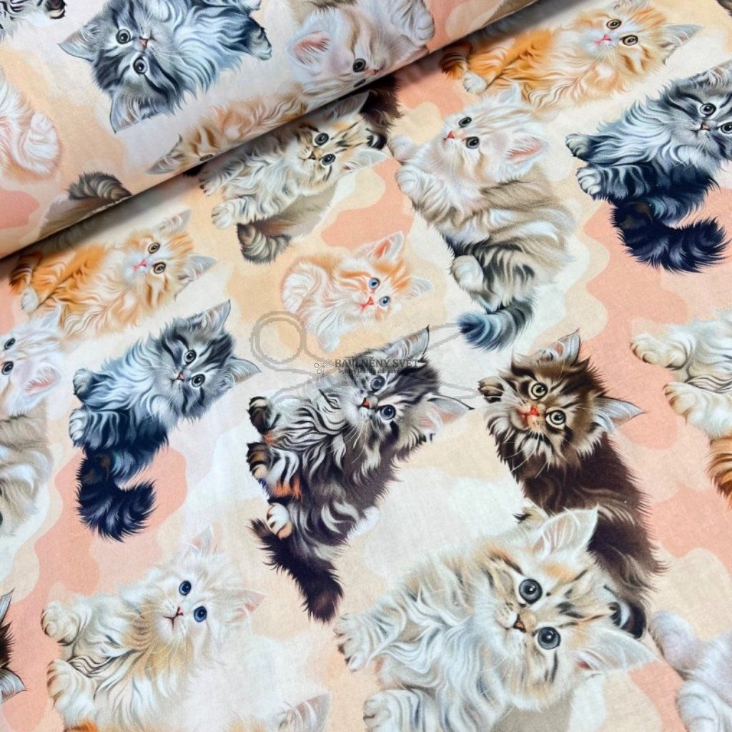 Bavlněná látka 5D KOČIČKY na MERUŇKOVÉM šíře 240 cm
