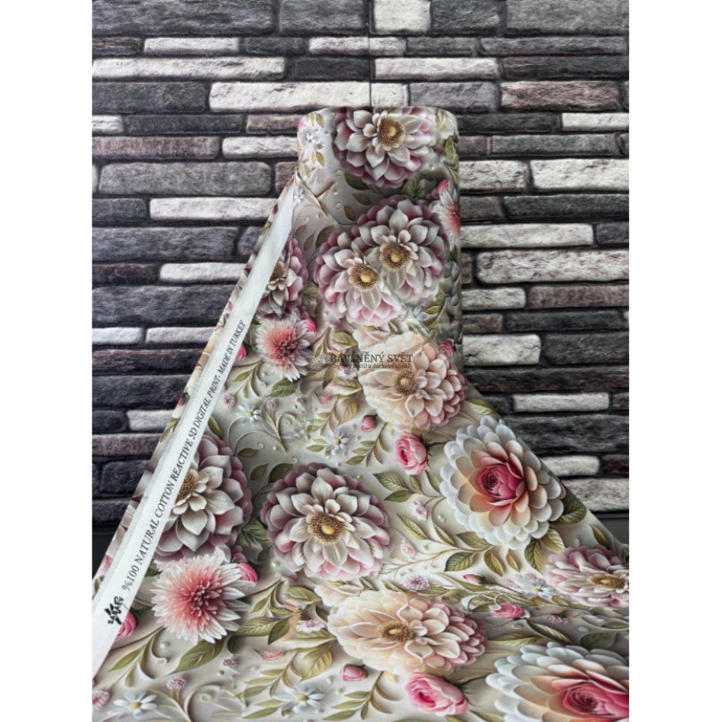 Bavlněná látka 5D KYTICE č. 8 šíře 240 cm