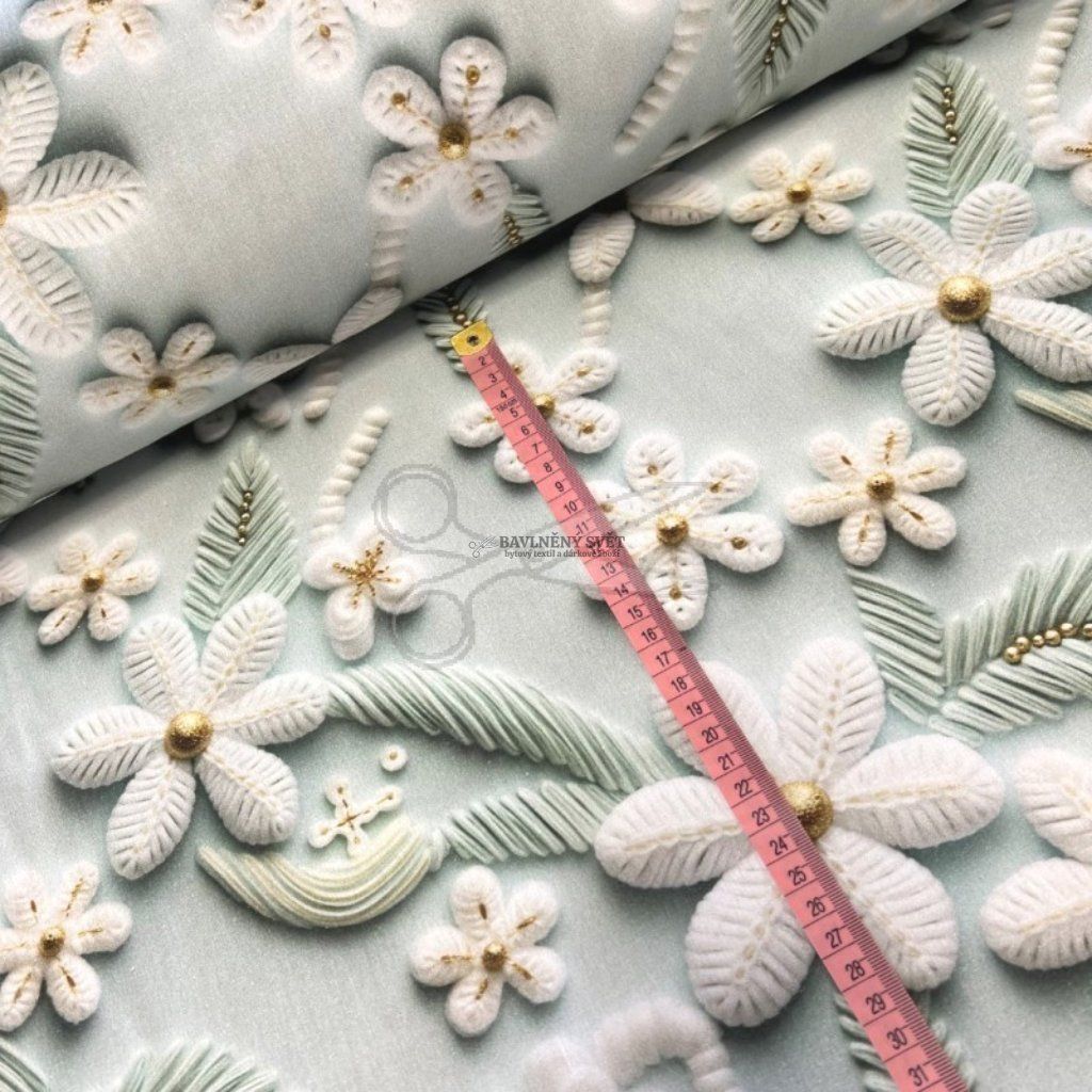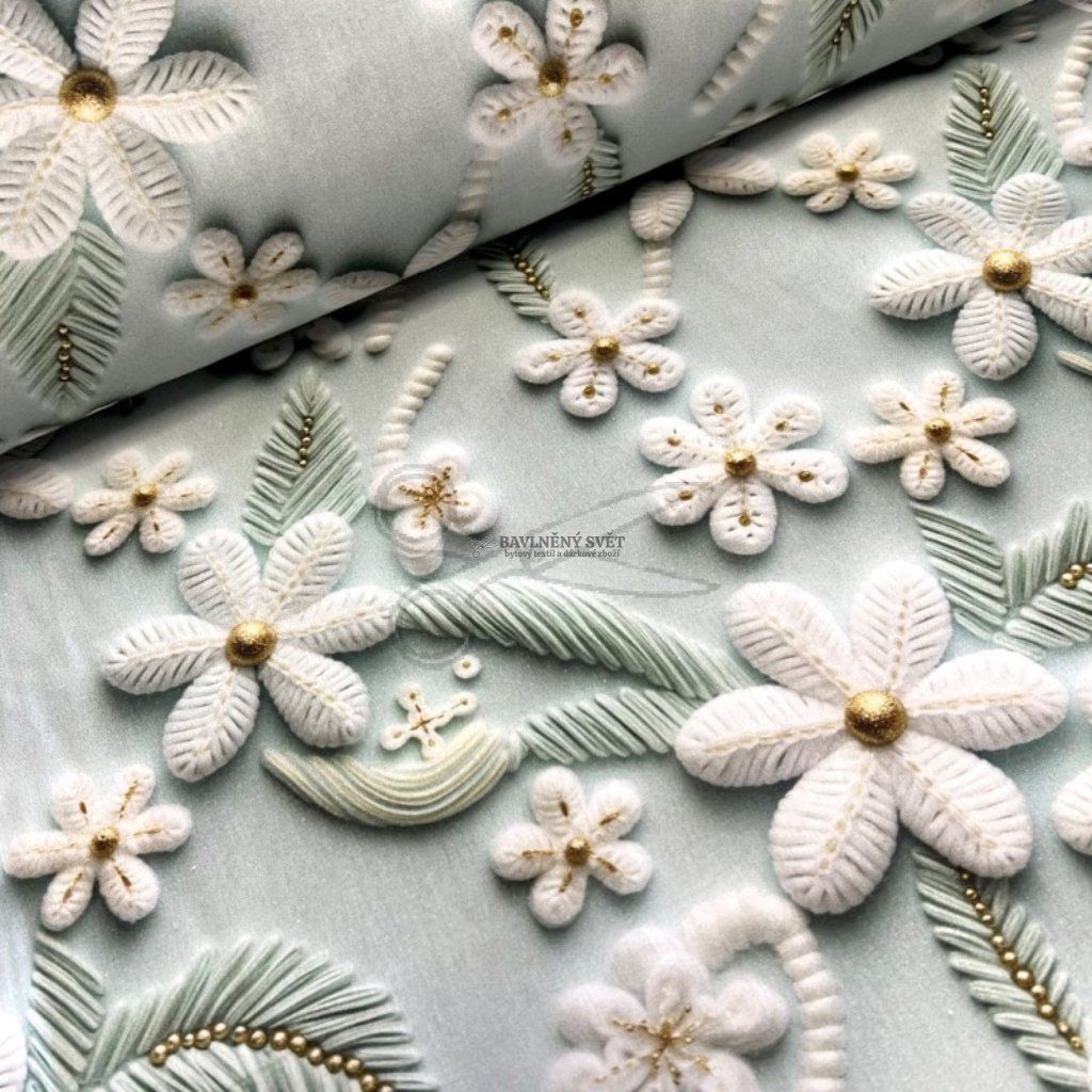 Oživte kouzlo tradice s naším prémiovým bavlněným plátnem, které využívá revoluční technologii 5D digitálního tisku. Tento vzor je mistrovským dílem designu - každá „nitka“ a každý „steh“ jsou vykresleny s takovou precizností, že látka na první pohled vypadá jako bohatě ručně vyšívaná. Získáte tak materiál s luxusním vzhledem historických textilií, ale se všemi výhodami moderní, snadno udržovatelné bavlny.