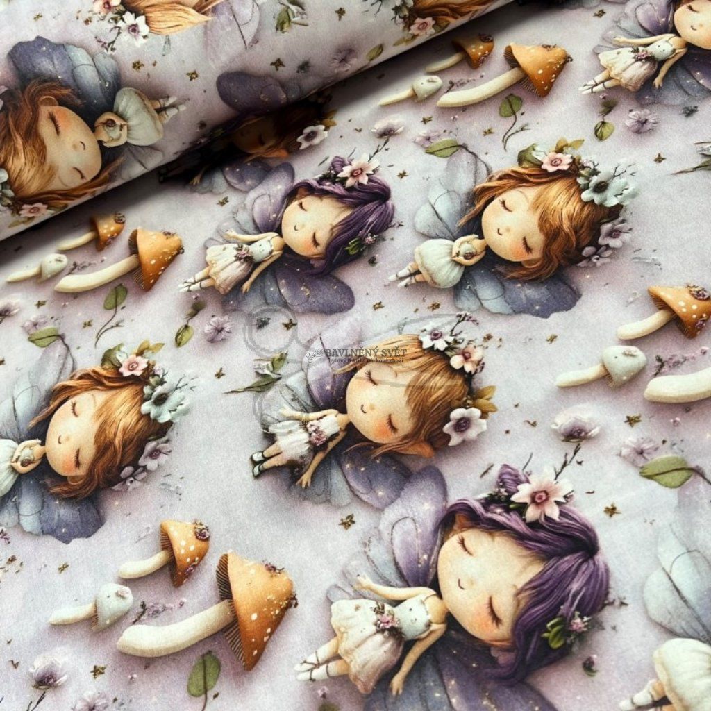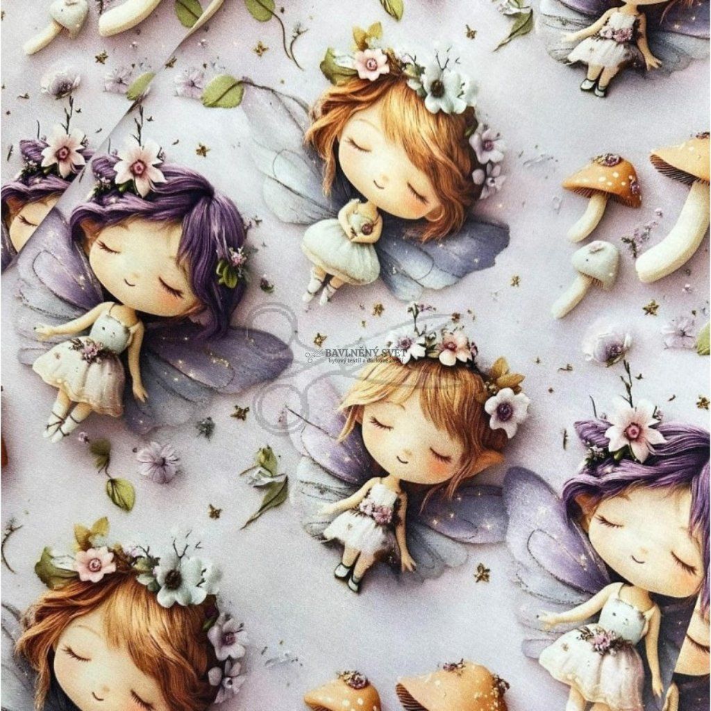 Bavlněná látka 5D LESNÍ VÍLA šíře 240 cm