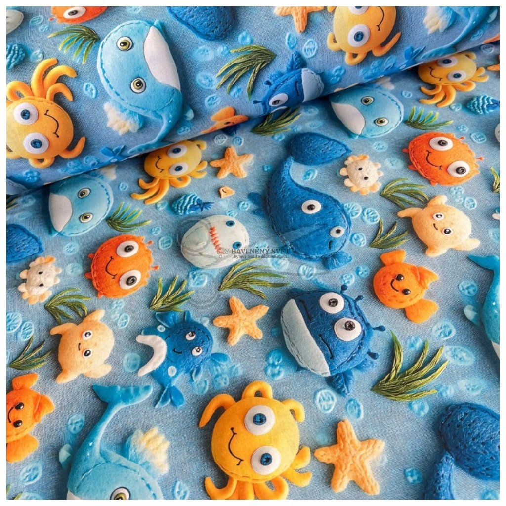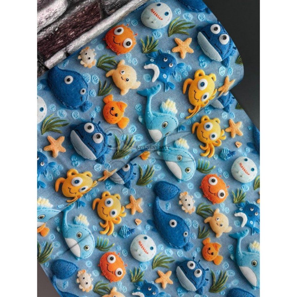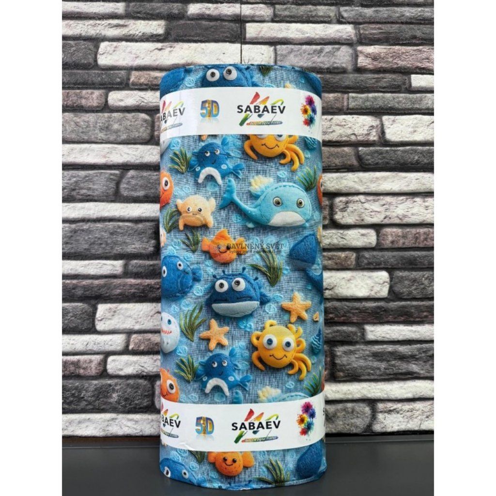 Bavlněná látka 5D MOŘSKÁ ZVÍŘÁTKA šíře 240 cm