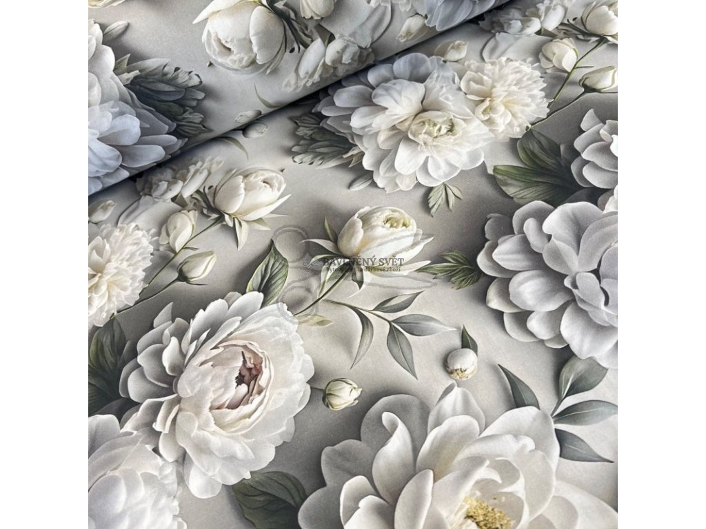 Pozvedněte své tvoření na novou úroveň s naším luxusním bavlněným plátnem velkých rozkvětlých květů bíllých pivoněk s revolučním 5D digitálním tiskem. Tato nejmodernější technologie umožňuje přenést motiv s neuvěřitelnou hloubkou a ostrostí. Na rozdíl od běžných tisků je tento proces náročnější a výsledkem je látka s vysokou estetickou hodnotou, která se stane dominantou každého interiéru.