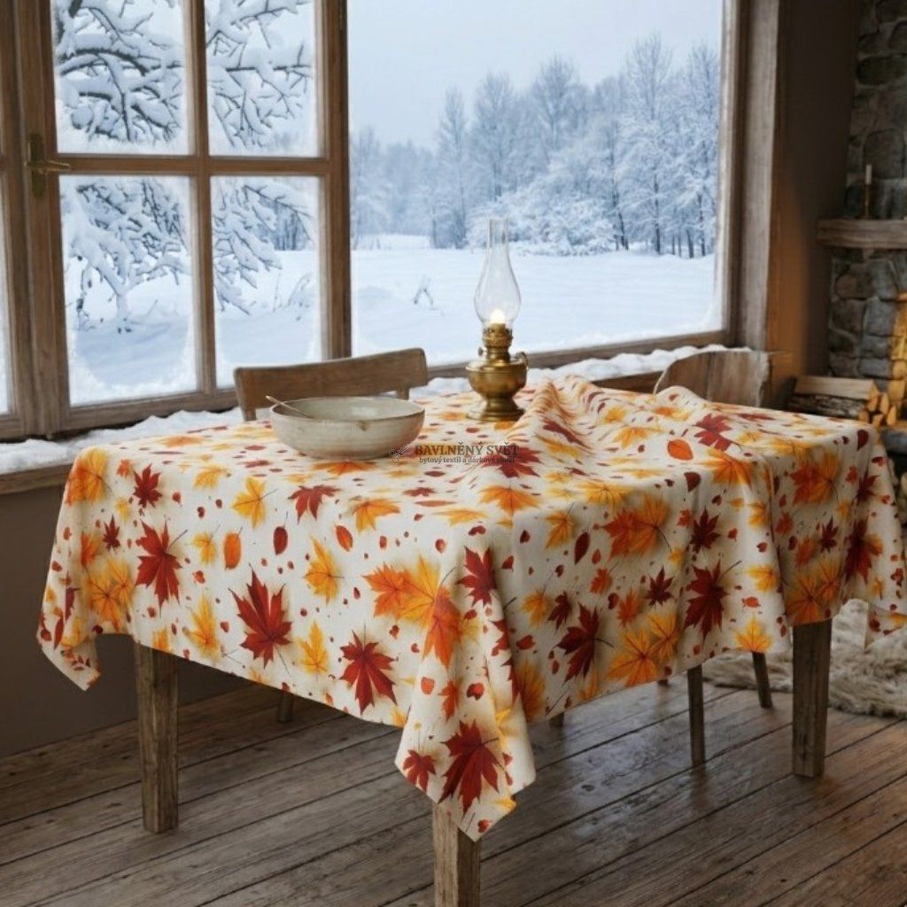 Hlavní dominantou tohoto materiálu je inovativní 5D tisk, který vytváří neuvěřitelně realistický a prostorový efekt. Motiv barevného podzimního listí v teplých tónech žluté, rezavé a vínové působí na světlém podkladu živým dojmem, jako by listy skutečně ležely na povrchu látky. Tento stínovaný vzor dodá vašemu interiéru hřejivou a útulnou atmosféru, která je pro podzimní období typická.