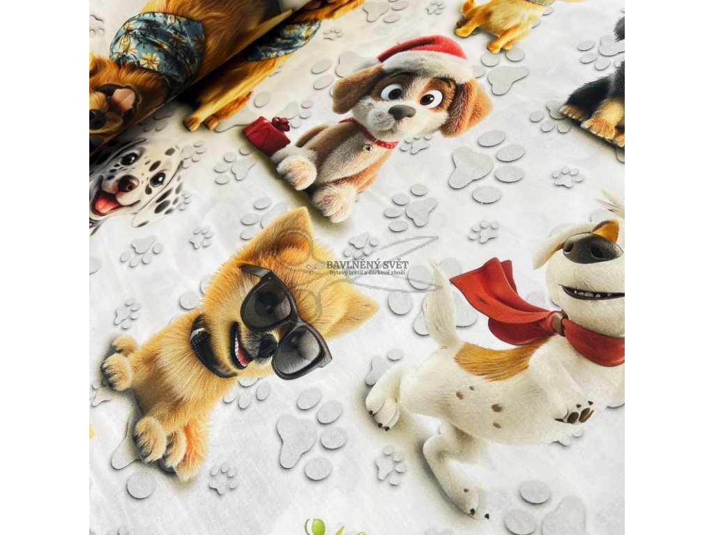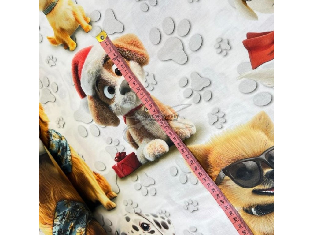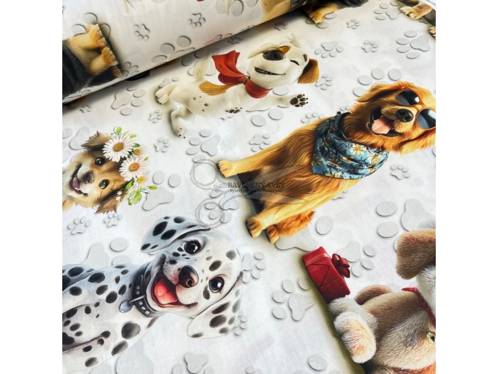 Bavlněná látka 5D ROZTOMILÍ PEJSCI s TLAPIČKAMI šíře 240 cm
