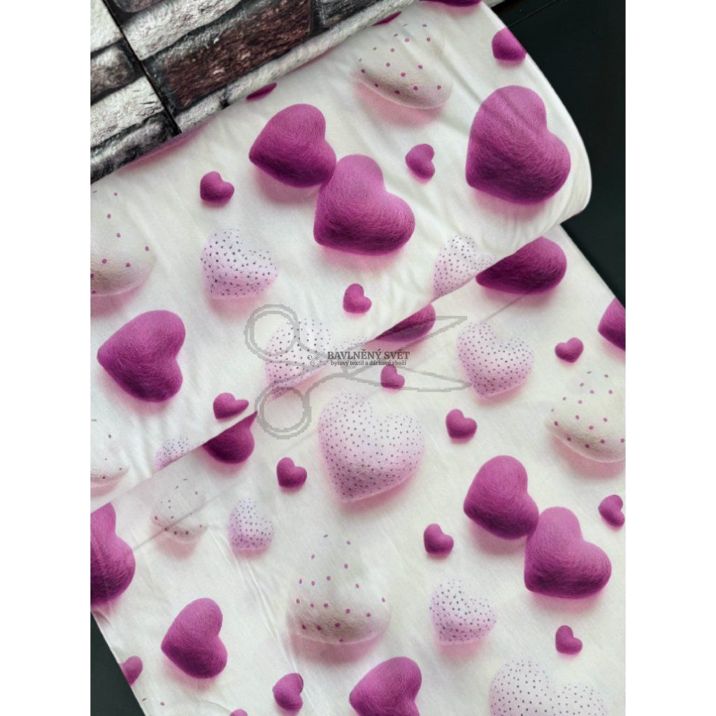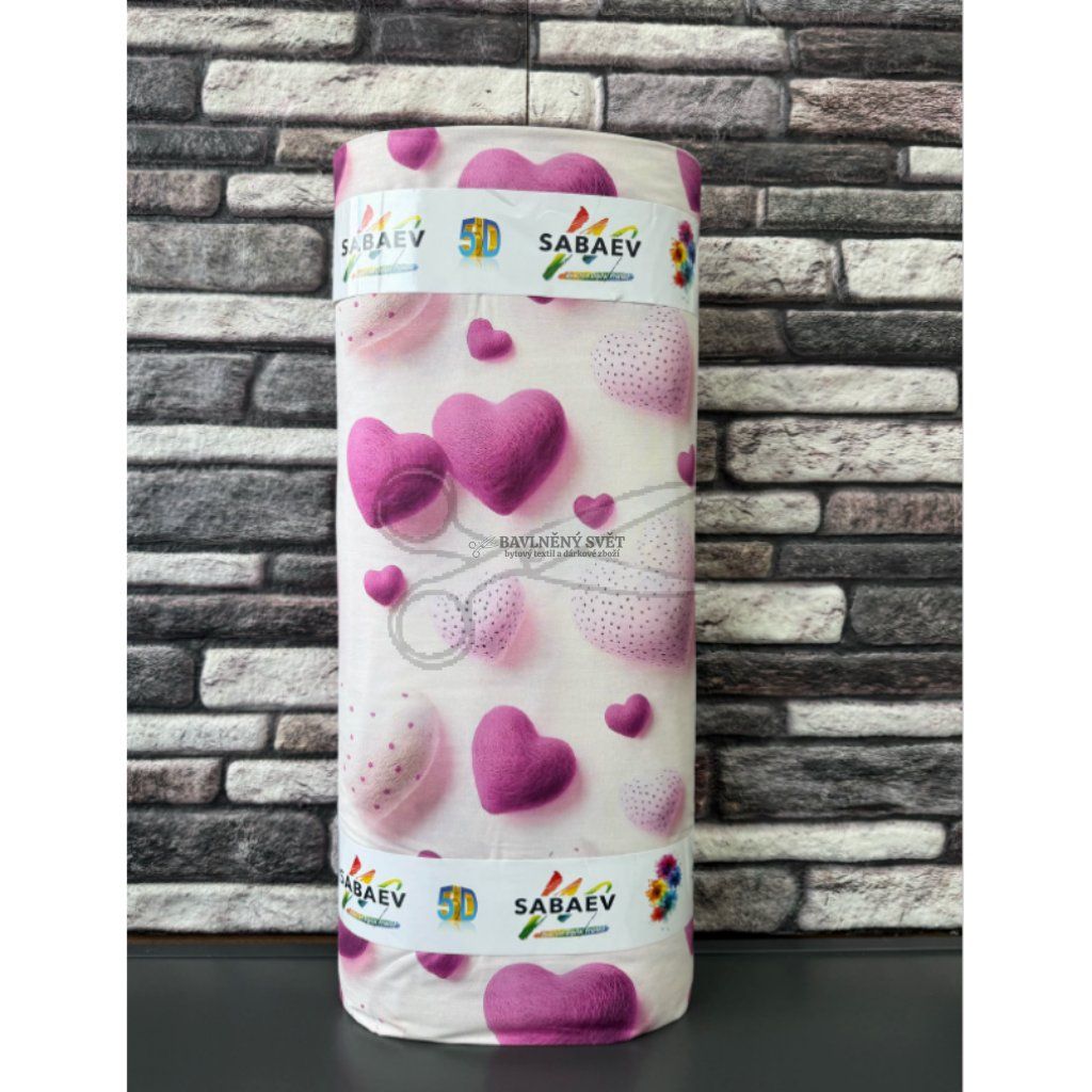 Bavlněná látka 5D SRDÍČKA růžová šíře 240 cm