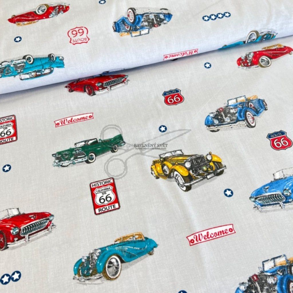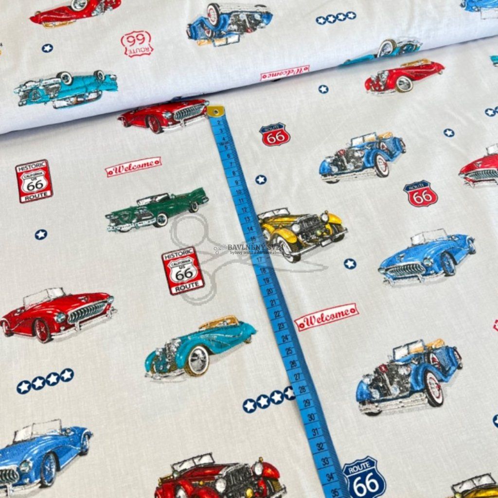 Bavlněná látka AUTA ROUTTE 66 šíře 160 cm