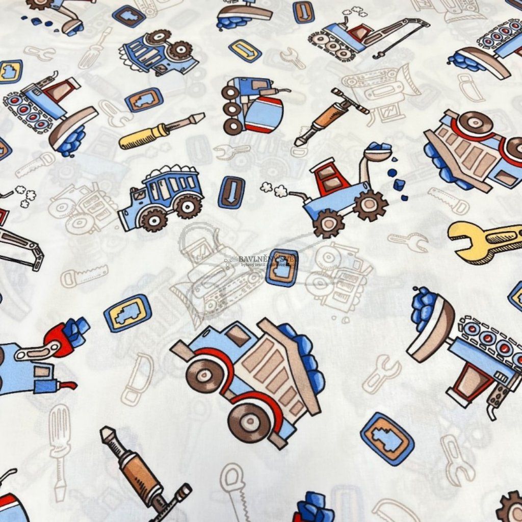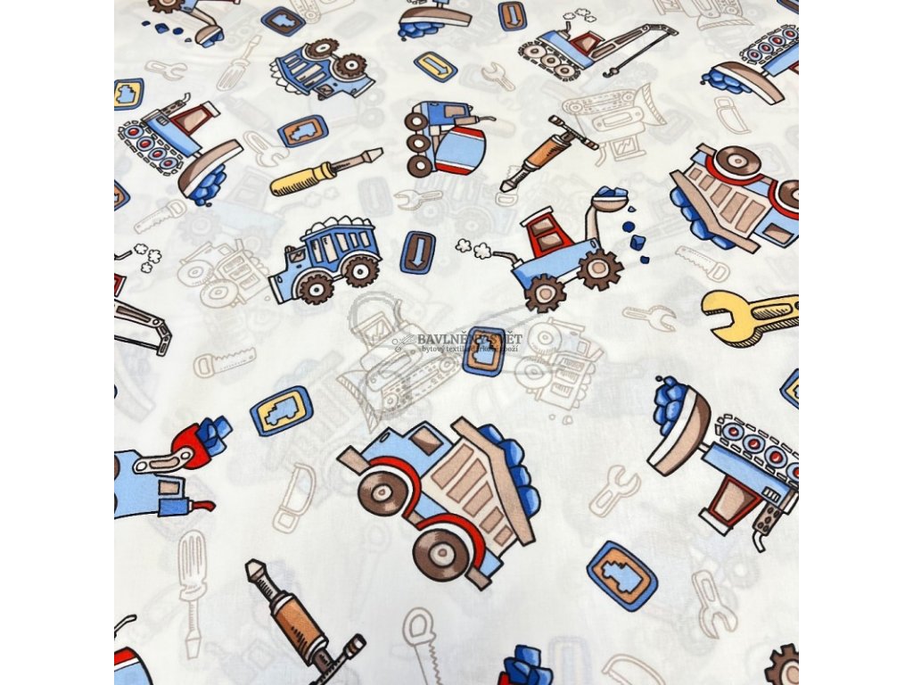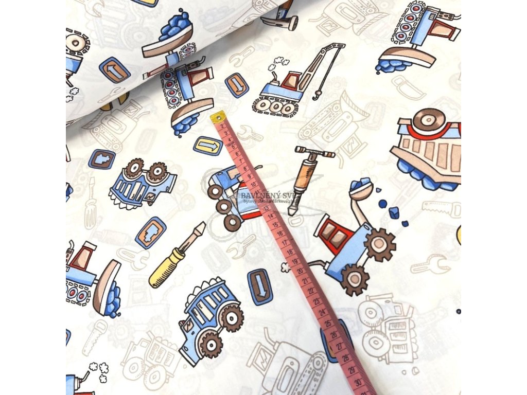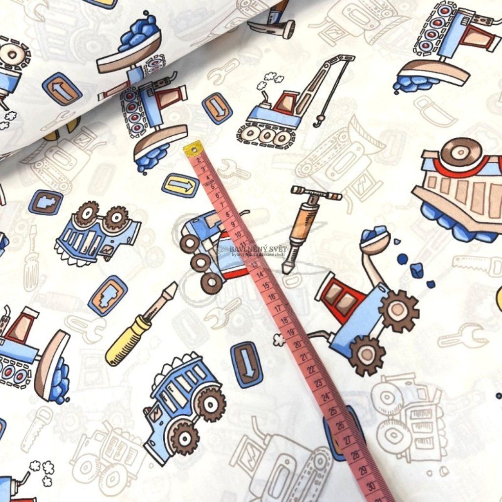 Bavlněná látka DĚTSKÉ NÁŘADÍ a AUTA šíře 240 cm