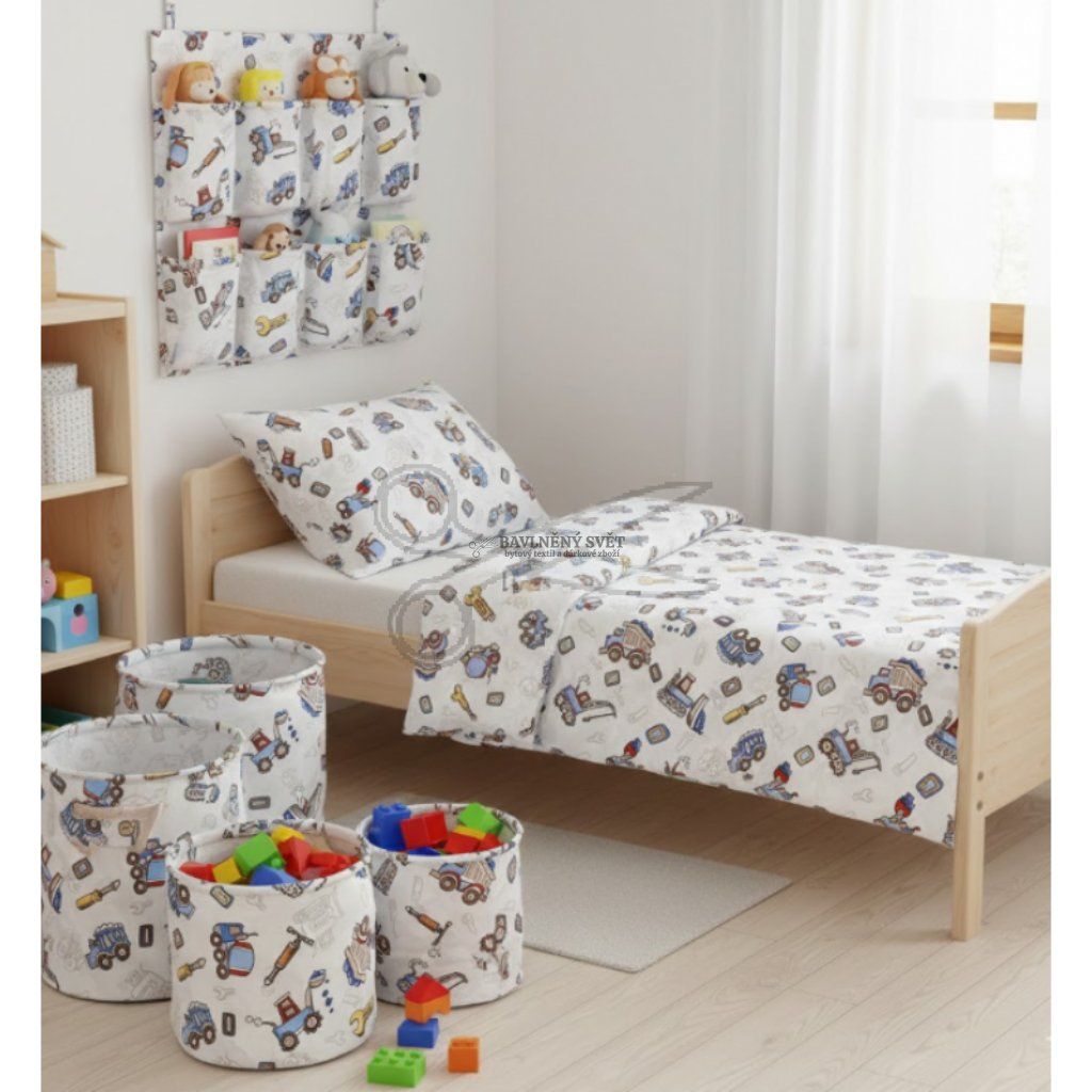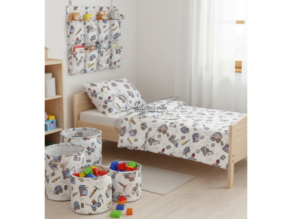 Každý malý objevitel potřebuje prostor, který podnítí jeho zvídavost. Naše bavlněné plátno s dětskými stroji a nářadím promění dětský pokoj v tvůrčí dílnu plnou barev a radosti. Na světlém podkladu najdete vše, co k pořádné práci patří - od modrých náklaďáků a bagrů až po klíče, šroubováky a kladívka.
