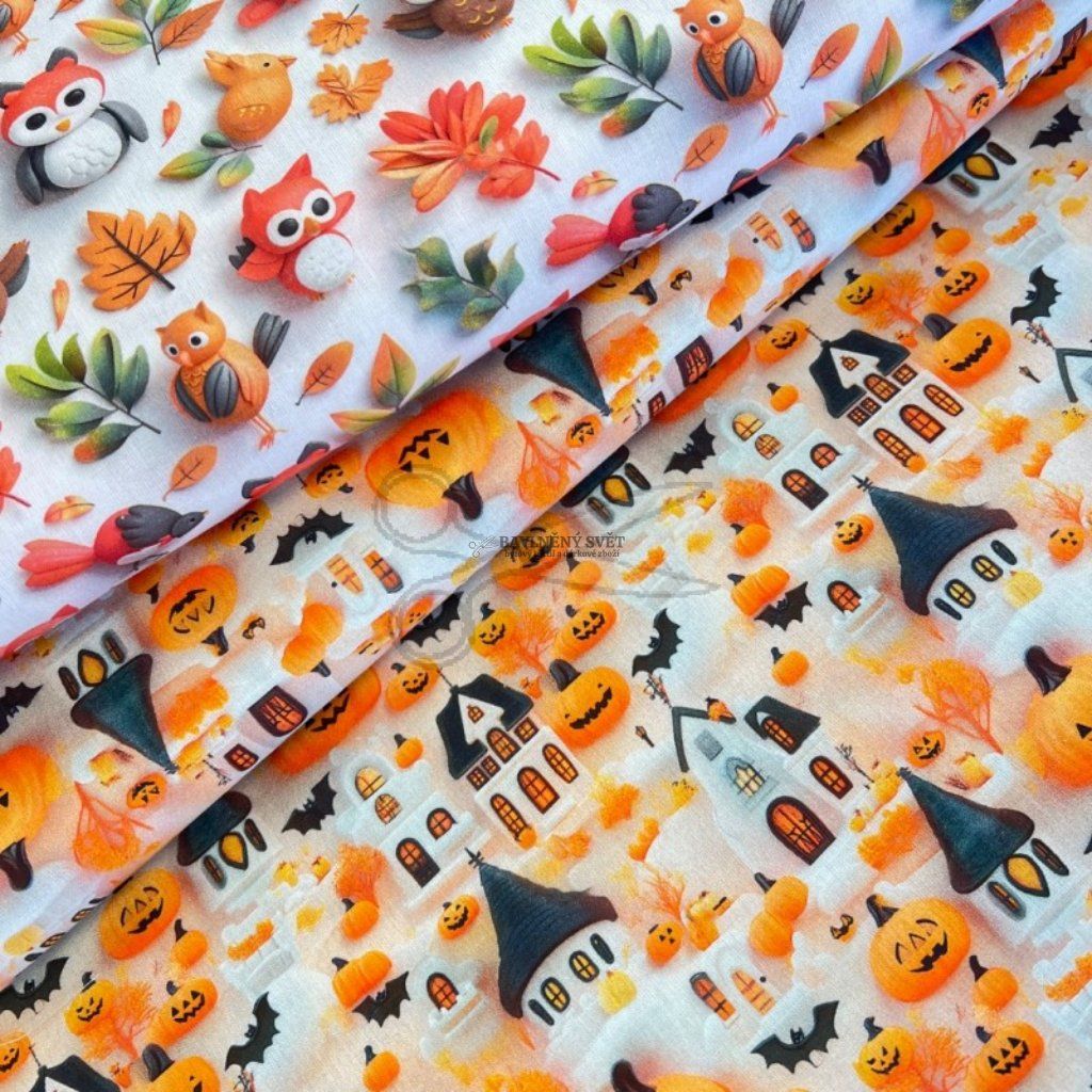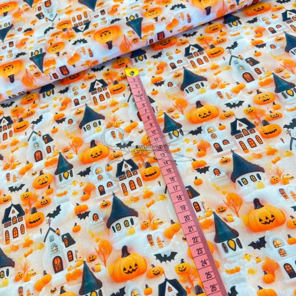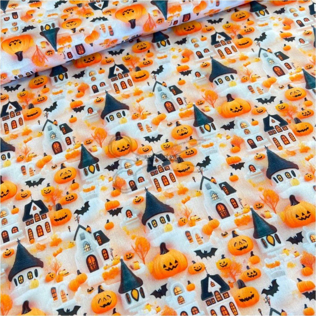 Tato prémiová bavlna je díky speciální úpravě enzymací mnohem hladší a příjemnější na omak než běžná plátna, což ji spolu s nižší gramáží činí ideální pro šití věcí, u kterých vyžadujete lehkost a jemnost. Výrazný motiv zářivých dýní, netopýrů a tajuplných domečků na světlém podkladu je jako stvořený pro výrobu sezónních doplňků, které okamžitě navodí tu správnou podzimní atmosféru.