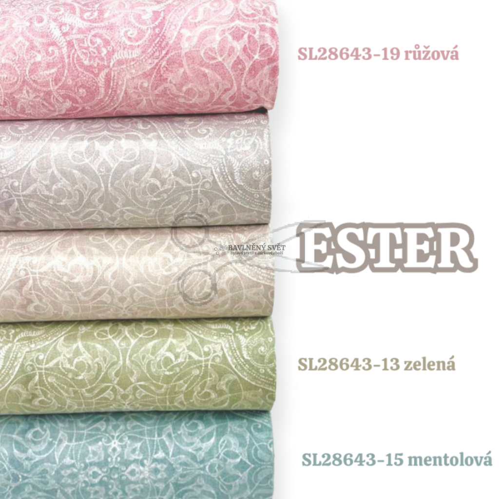 Toto 100% bavlněné plátno v šířce 240 cm Vás okouzlí svou sytou a moderní barvou. Vzor Ester mentolová je tvořen propracovanou kombinací abstraktních prvků a tónování, které na mentolovém podkladu vytváří fascinující vizuální efekt. Díky své neotřelosti se látka skvěle hodí do minimalistických i industriálně laděných interiérů, kde vynikne její jedinečný charakter. Přímo u nás na dílně z této látky šijeme těhotenské polohovací polštáře, které díky svému unikátnímu vzoru vypadají naprosto luxusně a stanou se stylovým doplňkem Vaší ložnice.