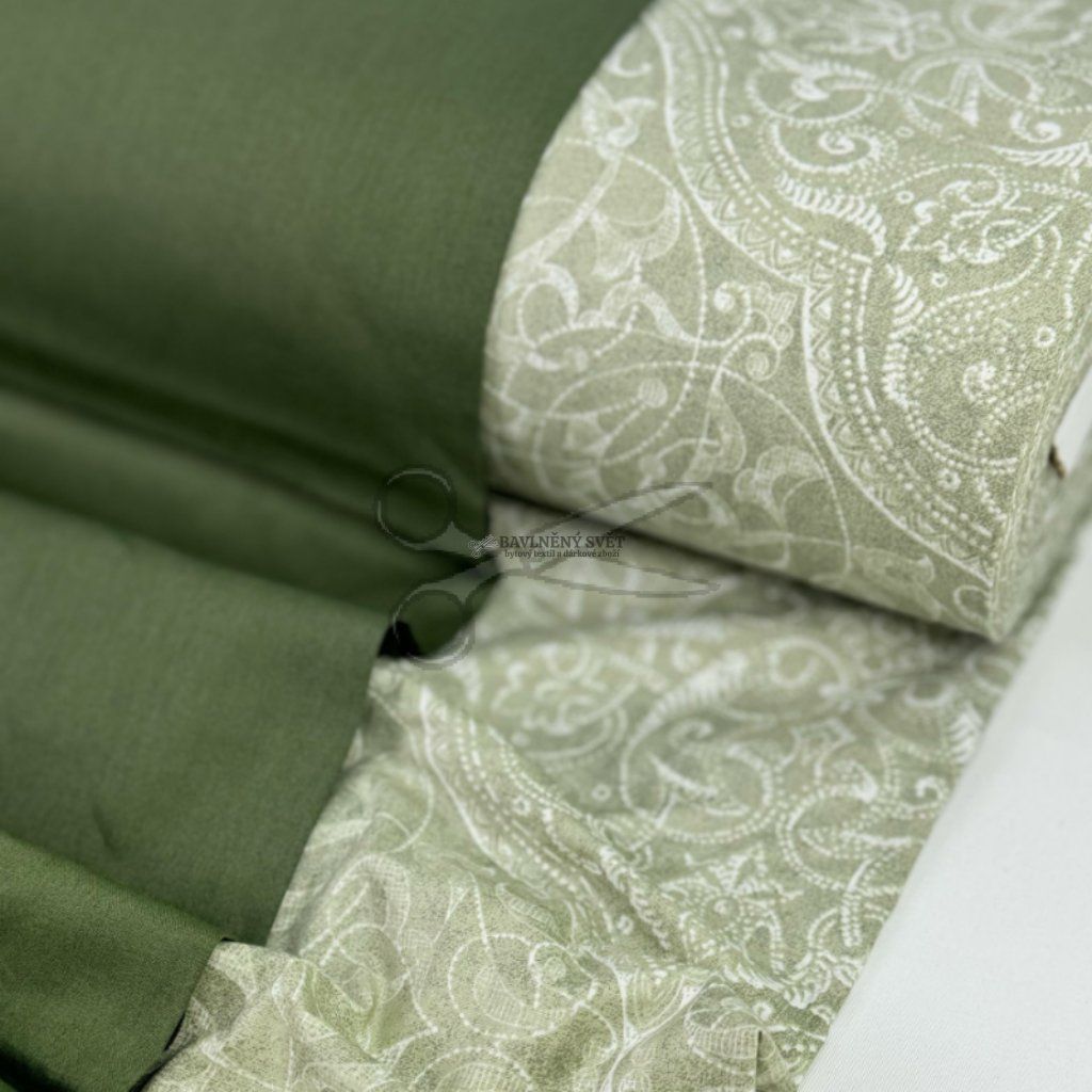 Toto 100% bavlněné plátno v šířce 240 cm Vás okouzlí svou sytou a moderní barvou. Vzor Ester zelená je tvořen propracovanou kombinací abstraktních prvků a tónování, které na khaki podkladu vytváří fascinující vizuální efekt. Díky své neotřelosti se látka skvěle hodí do minimalistických i industriálně laděných interiérů, kde vynikne její jedinečný charakter. Přímo u nás na dílně z této látky šijeme těhotenské polohovací polštáře, které díky svému unikátnímu vzoru vypadají naprosto luxusně a stanou se stylovým doplňkem Vaší ložnice.