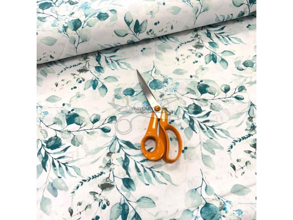 Bavlněná látka EUKALYPTUS velký MENTOLOVÝ šíře 160 cm