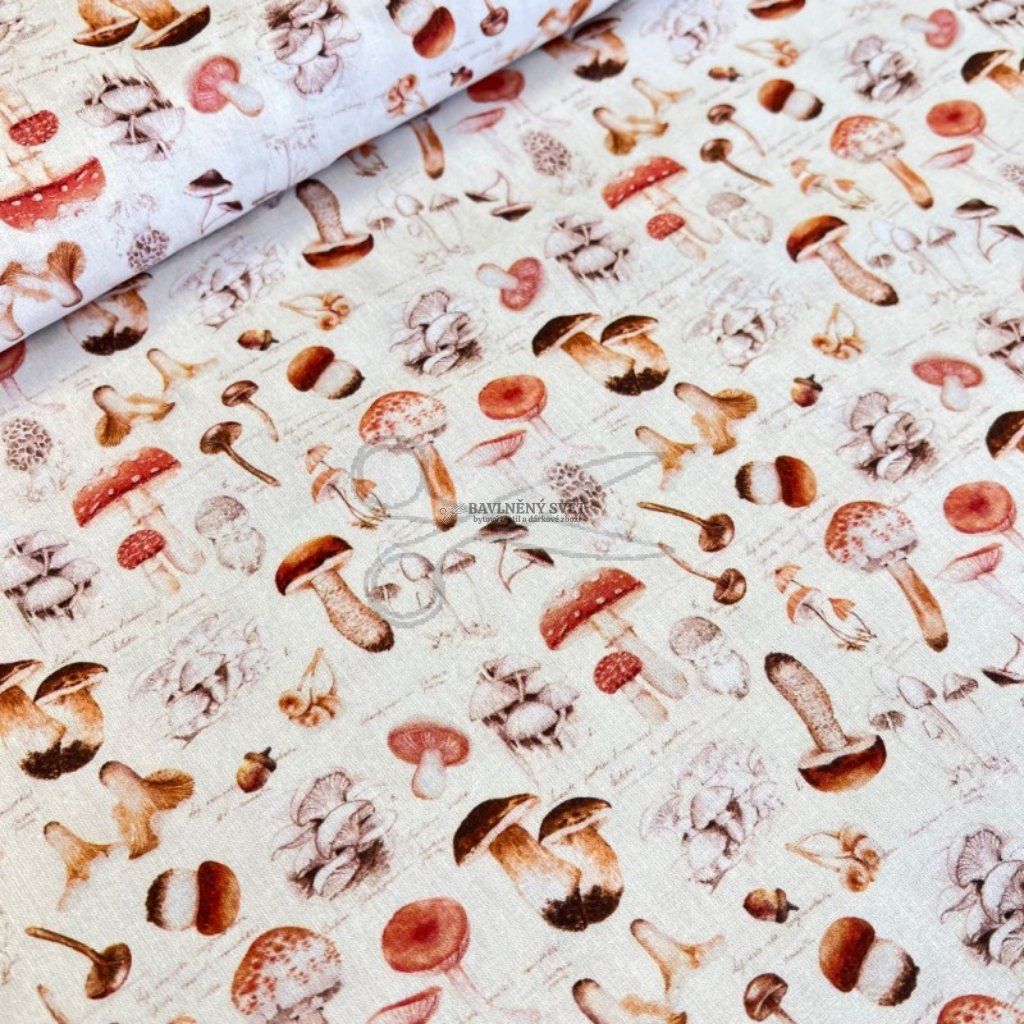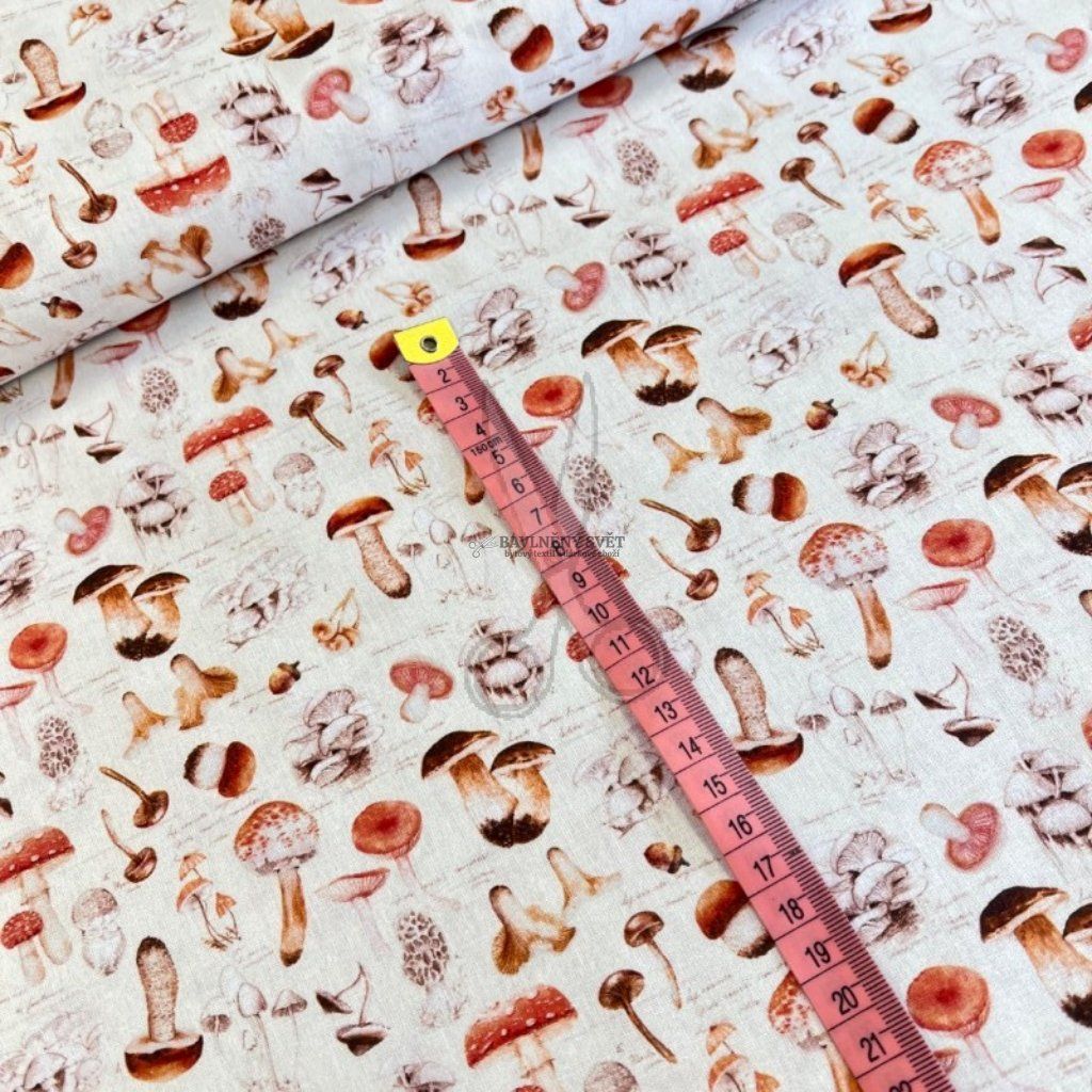 Pokud hledáte materiál, který v sobě snoubí tradici s prvotřídním zpracováním, pak je tato enzymovaná bavlna s motivem hub tou správnou volbou. Díky své lehké gramáži a hladkému povrchu bez drobných chloupků je látka mimořádně prodyšná a příjemná, což oceníte při výrobě doplňků inspirovaných přírodou. Tradiční vzor hříbků na světlém podkladu okamžitě navodí útulnou atmosféru a vnese kus lesa přímo do vašeho domova.