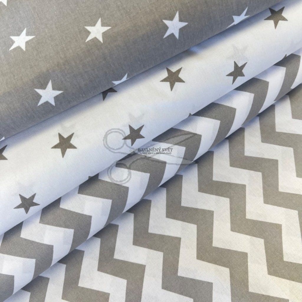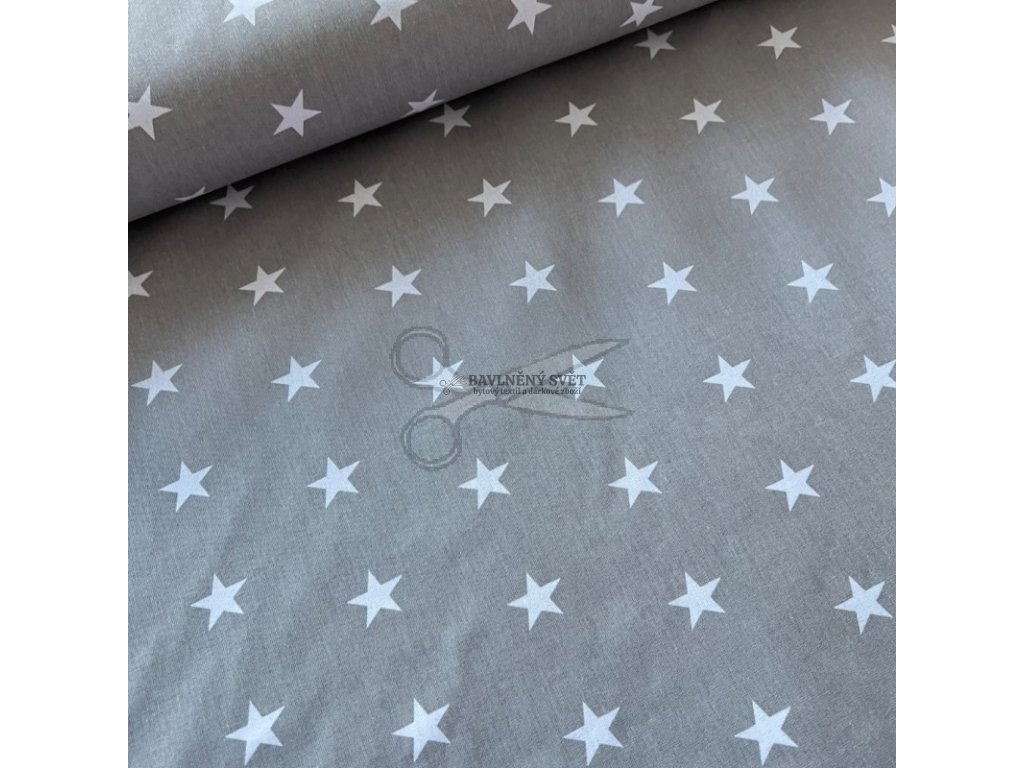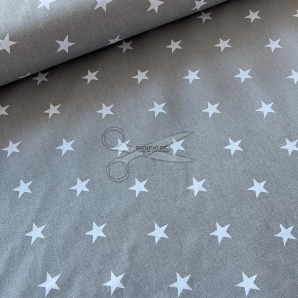 Bavlněná látka HVĚZDIČKA BÍLÁ na ŠEDÉM šíře 160 cm