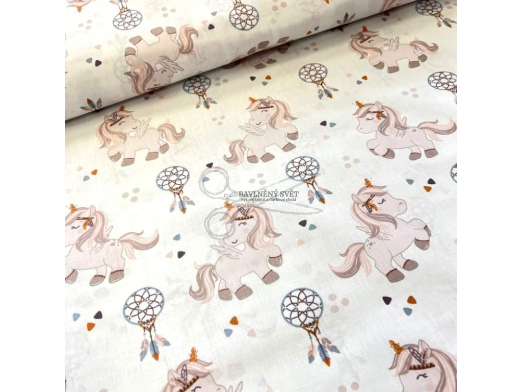 Bavlněná látka JEDNOROŽEC a LAPAČ SNŮ šíře 160 cm