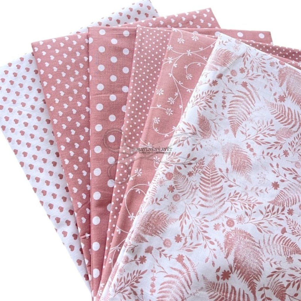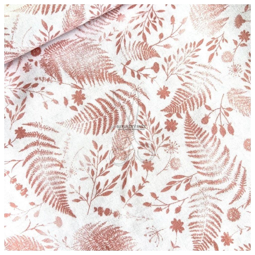 Bavlněná látka KAPRADÍ starorůžové šíře 140 cm