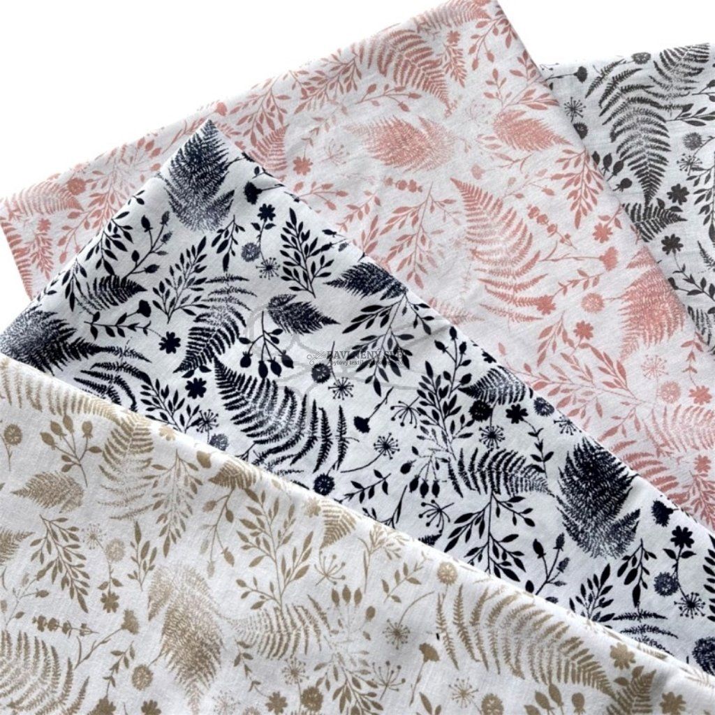 Vneste do svých projektů kousek přírody s naším bavlněným plátnem s motivem kapradí. Jemné detaily lístků v tlumeném starorůžovém odstínu na světlém podkladu vytvářejí harmonický a uklidňující design, který působí velmi vkusně a nadčasově.