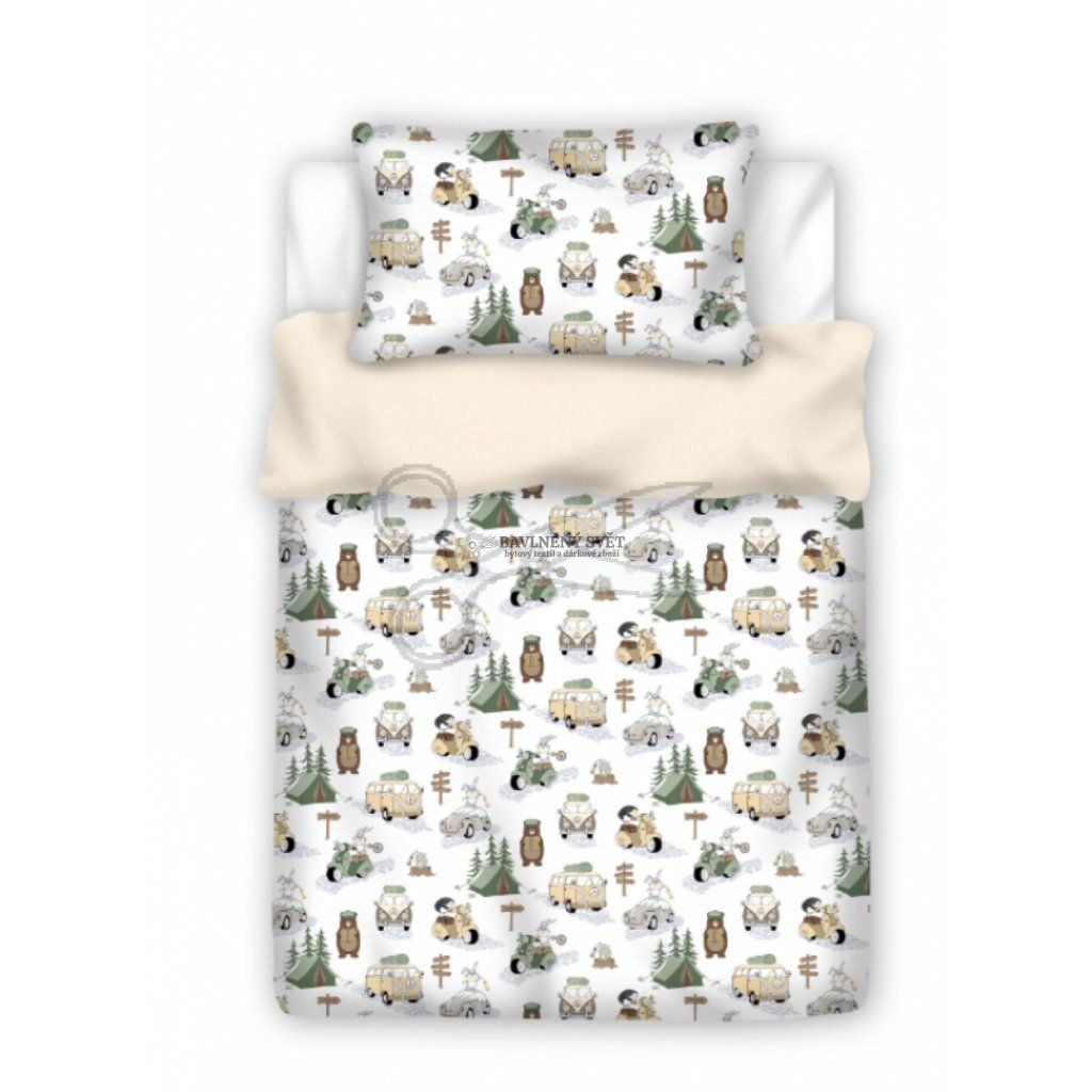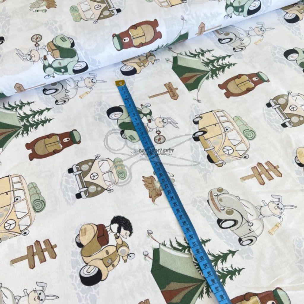 Dopřejte svým projektům nádech divočiny a pohody s tímto hravým vzorem, který kombinuje motivy hor, lesa a stanování. Látka vyniká pevnou, ale přesto jemnou strukturou bavlněného plátna, které je prodyšné a velmi dobře se s ním pracuje i při šití drobnějších doplňků.
