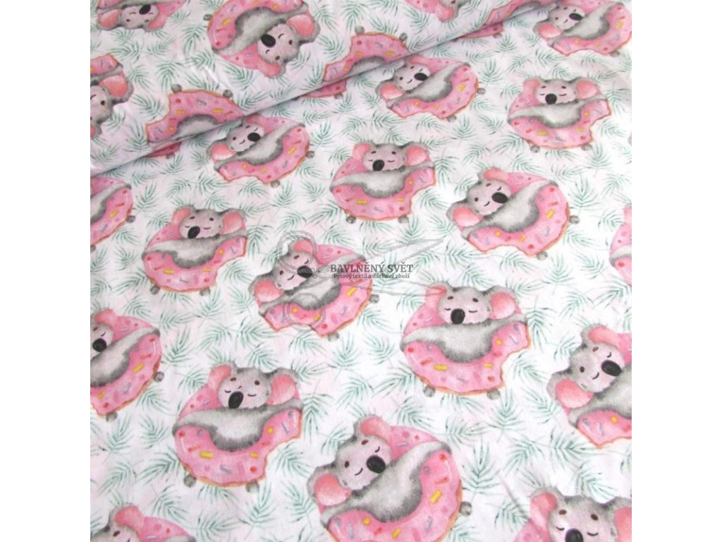 Bavlněná látka KOALA v KRUHU šíře 160 cm