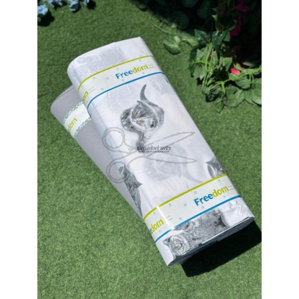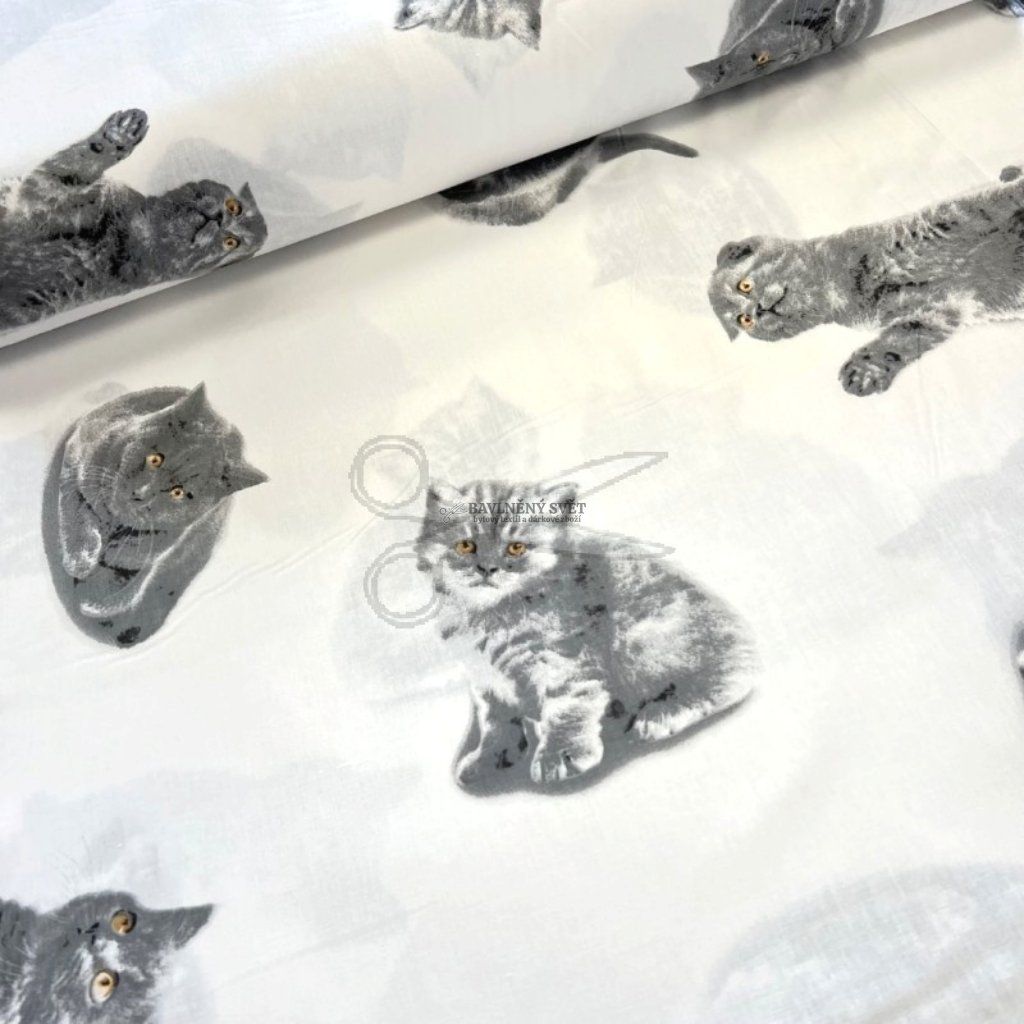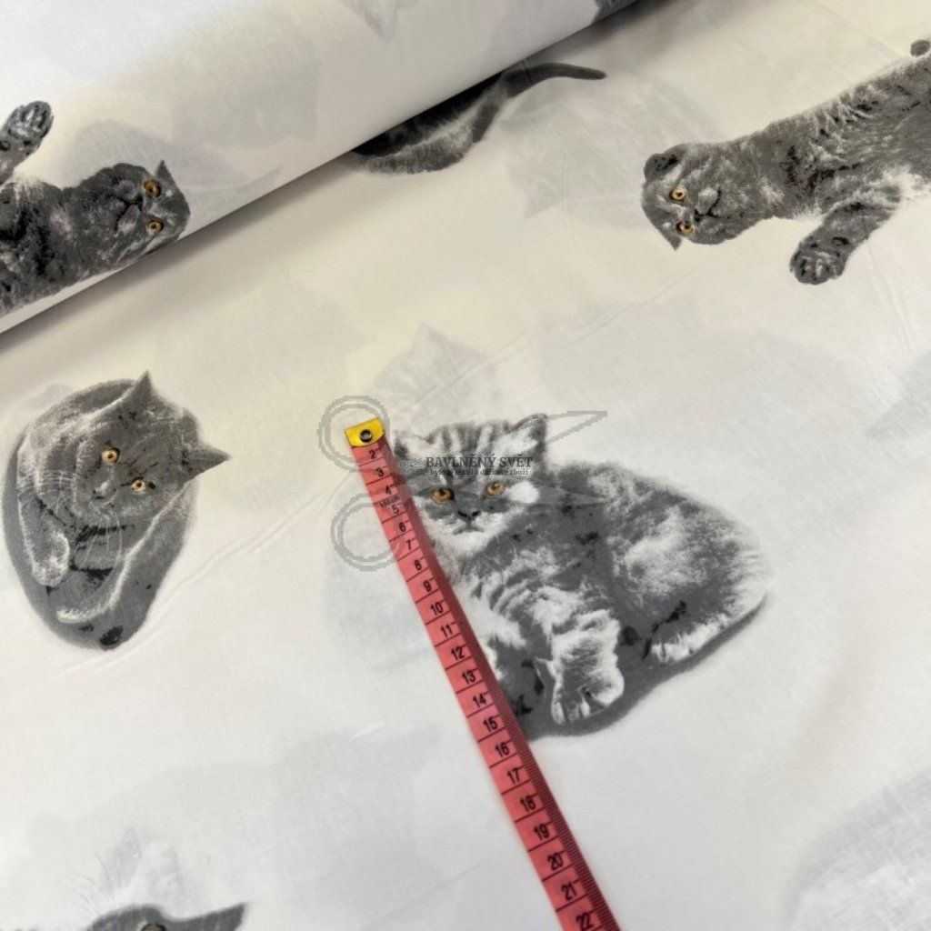 Bavlněná látka KOČKA šedá šíře 240 cm