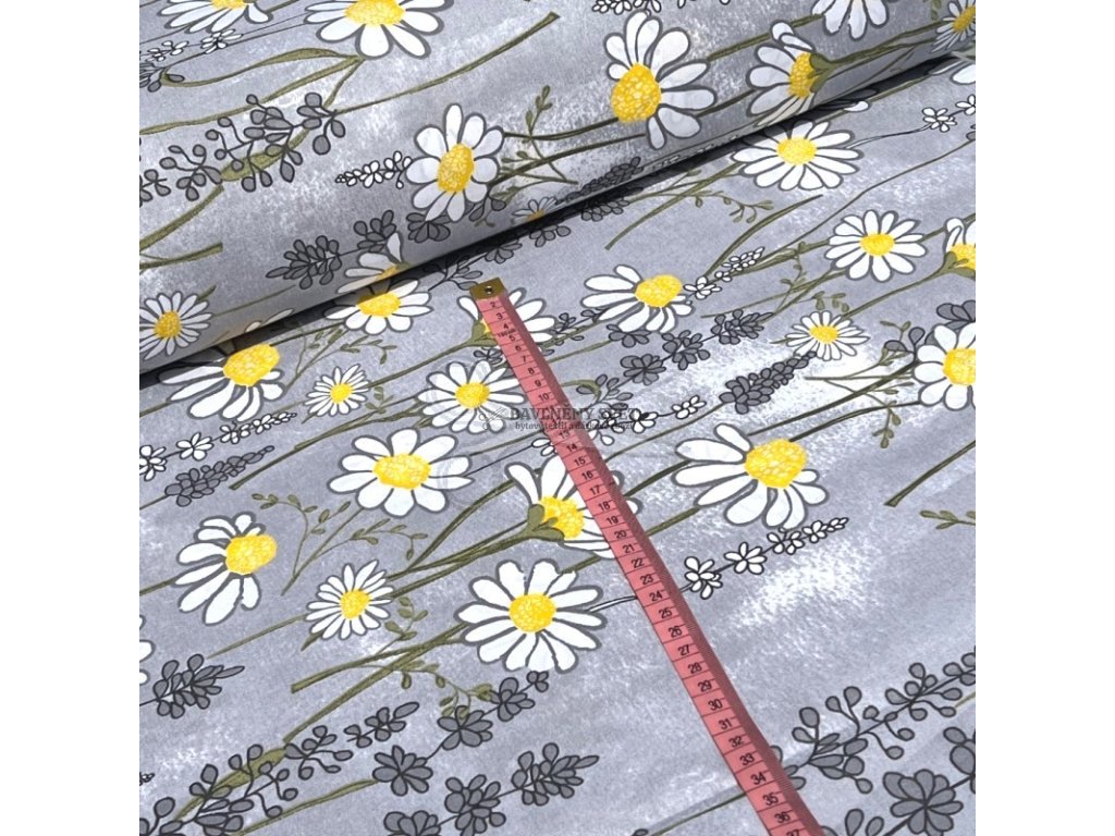 Látka je pevná, hustě tkaná a velmi příjemná na omak, což ji předurčuje pro výrobu ložního prádla. Díky nadstandardní šíři 240 cm je toto plátno ideální volbou pro šití francouzského povlečení, které díky tomu zůstane bez jakýchkoliv rušivých švů uprostřed. Pro vaše šití je klíčové, že vzor kopretin směřuje na šířku látky, tedy od jednoho pevného kraje k druhému, což usnadňuje polohování střihu.