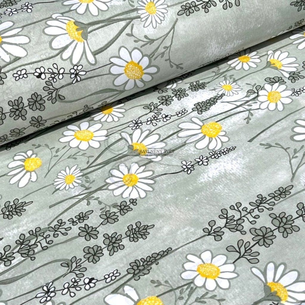 Látka je pevná, hustě tkaná a velmi příjemná na omak, což ji předurčuje pro výrobu ložního prádla. Díky nadstandardní šíři 240 cm je toto plátno ideální volbou pro šití francouzského povlečení, které díky tomu zůstane bez jakýchkoliv rušivých švů uprostřed. Pro Vaše šití je klíčové, že vzor kopretin směřuje na šířku látky, tedy od jednoho pevného kraje k druhému, což usnadňuje polohování střihu u větších kusů.