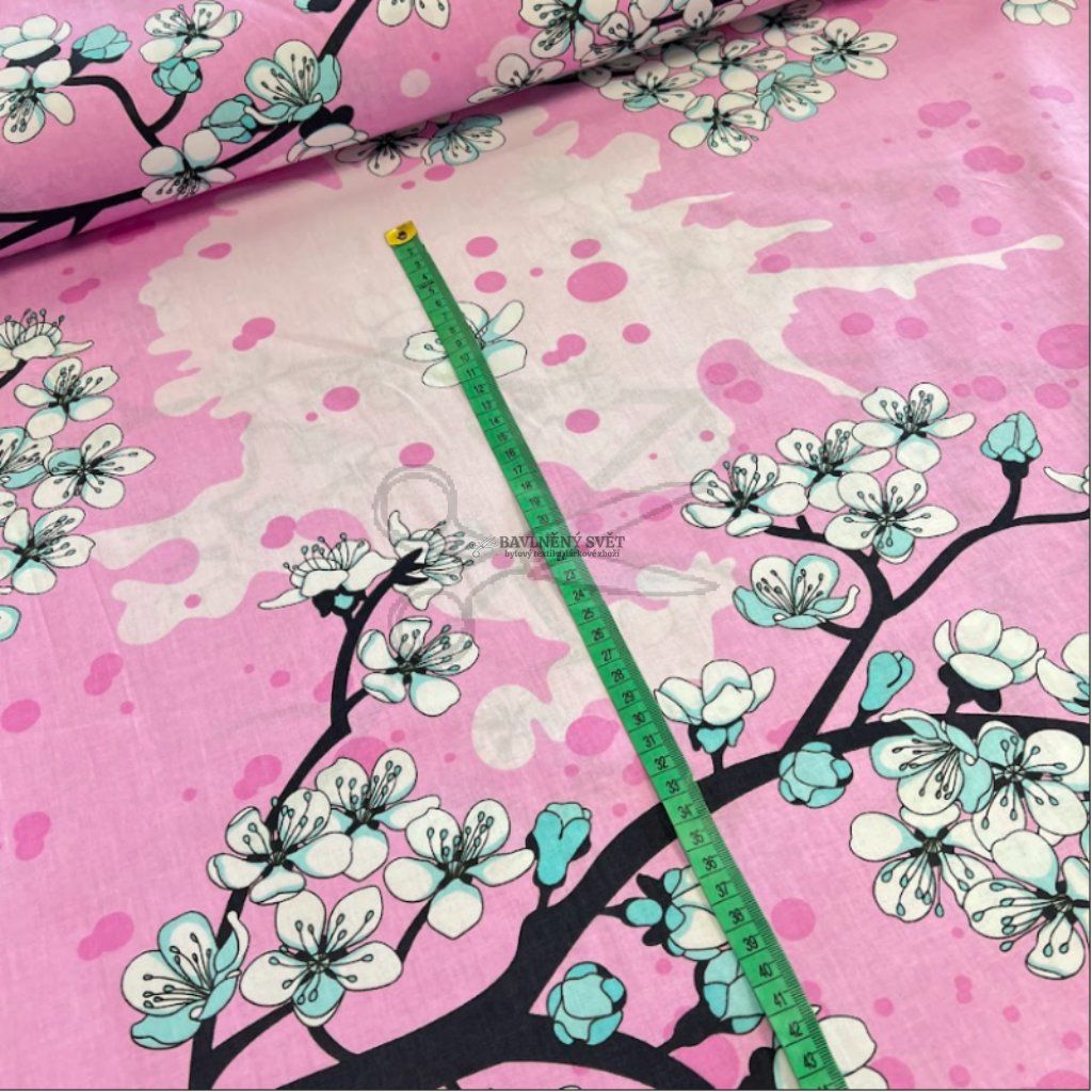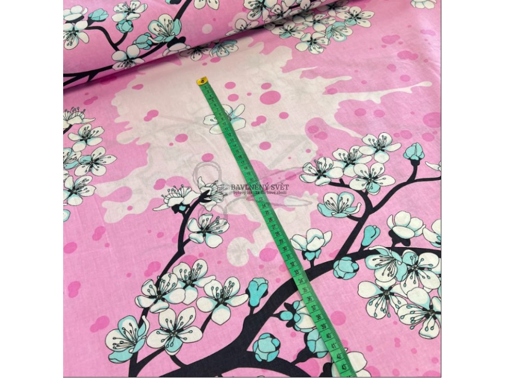 Bavlněná látka KVĚT jabloní šíře 160 cm