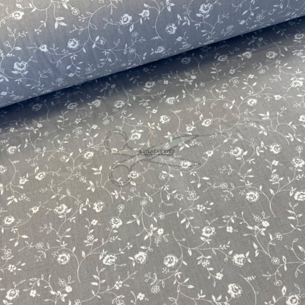 Bavlněná látka KVÍTKA drobná na ŠEDÉM šíře 240 cm