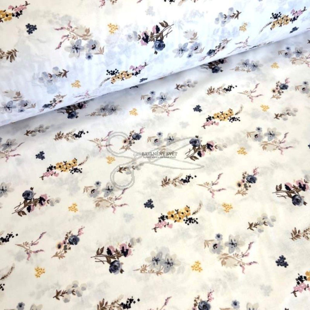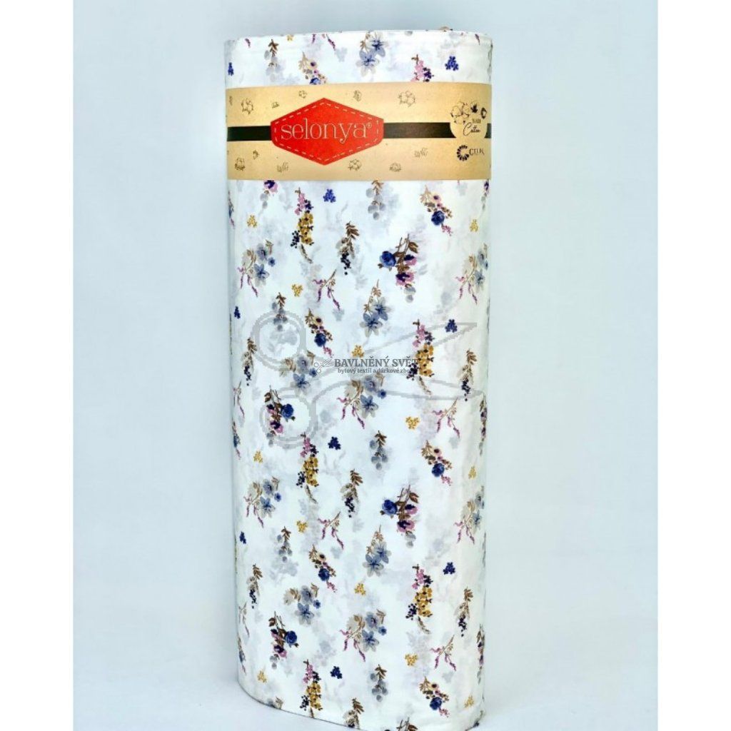 Bavlněná látka KVÍTKA Linda MODRÁ šíře 240 cm