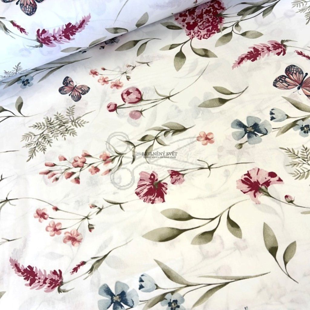 Bavlněná látka KYTIČKY Jindřiška šíře 240 cm