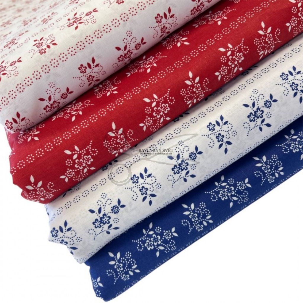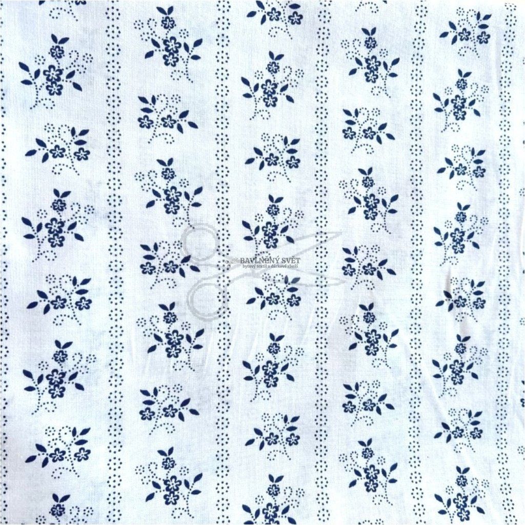 Bavlněná látka KYTKA v PRUHU modrá ROYAL na BÍLÉM šíře 140 cm