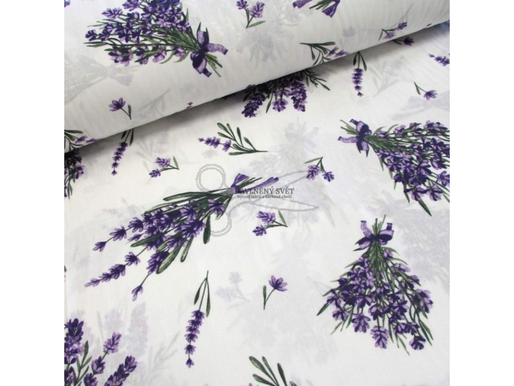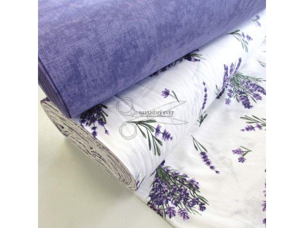 Toto 100% bavlněné plátno v šířce 240 cm vás okouzlí svou jemnou barevností a propracovaným detailem levandulových snítek. Drobný vzor kvítků v kombinaci s typickou fialovou barvou působí velmi harmonicky, což umožňuje látku využít v klasických i venkovsky laděných interiérech. Látka je pevná, hustě tkaná a velmi příjemná na omak.