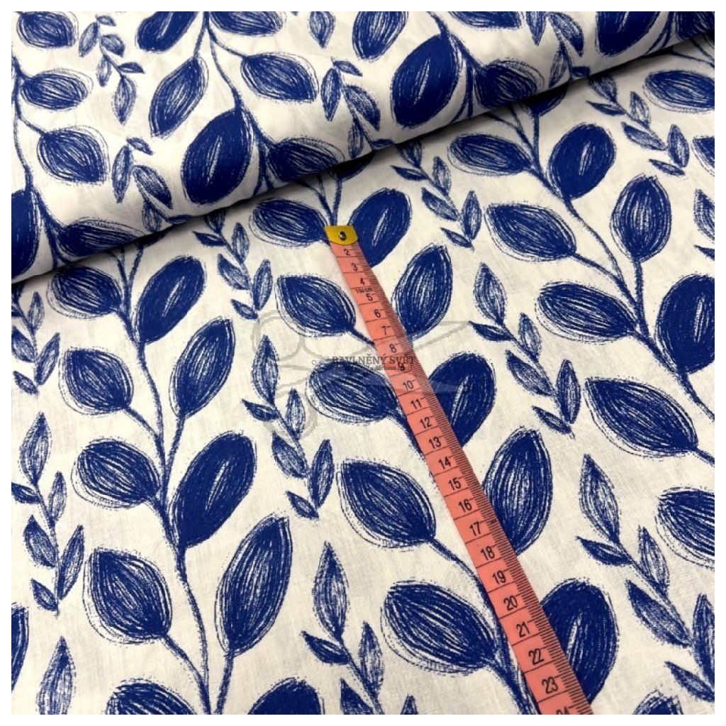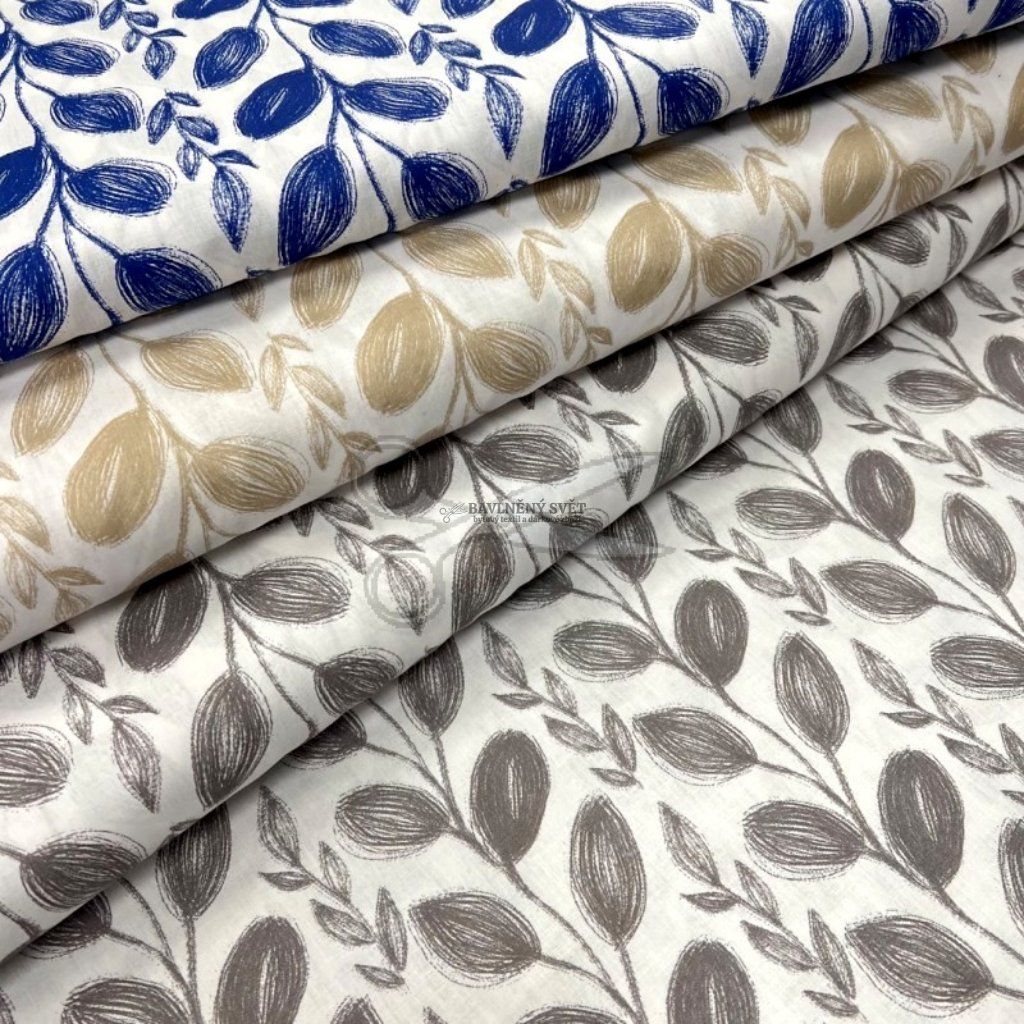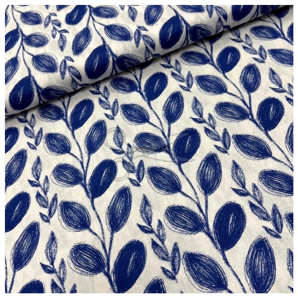 Dodejte svému domovu moderní a svěží vzhled s tímto nadčasovým rostlinným vzorem. Látka je vyrobena z pevného bavlněného plátna, které vyniká svou hladkostí a jemností na dotek. Graficky zpracovaný motiv modrých lístků, které připomínají kresbu tuší, působí velmi luxusně a snadno se stane dominantou každé místnosti.