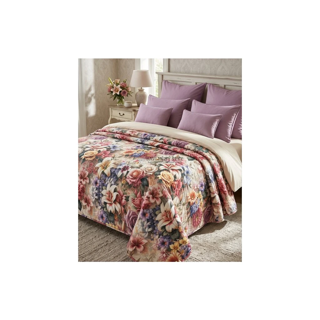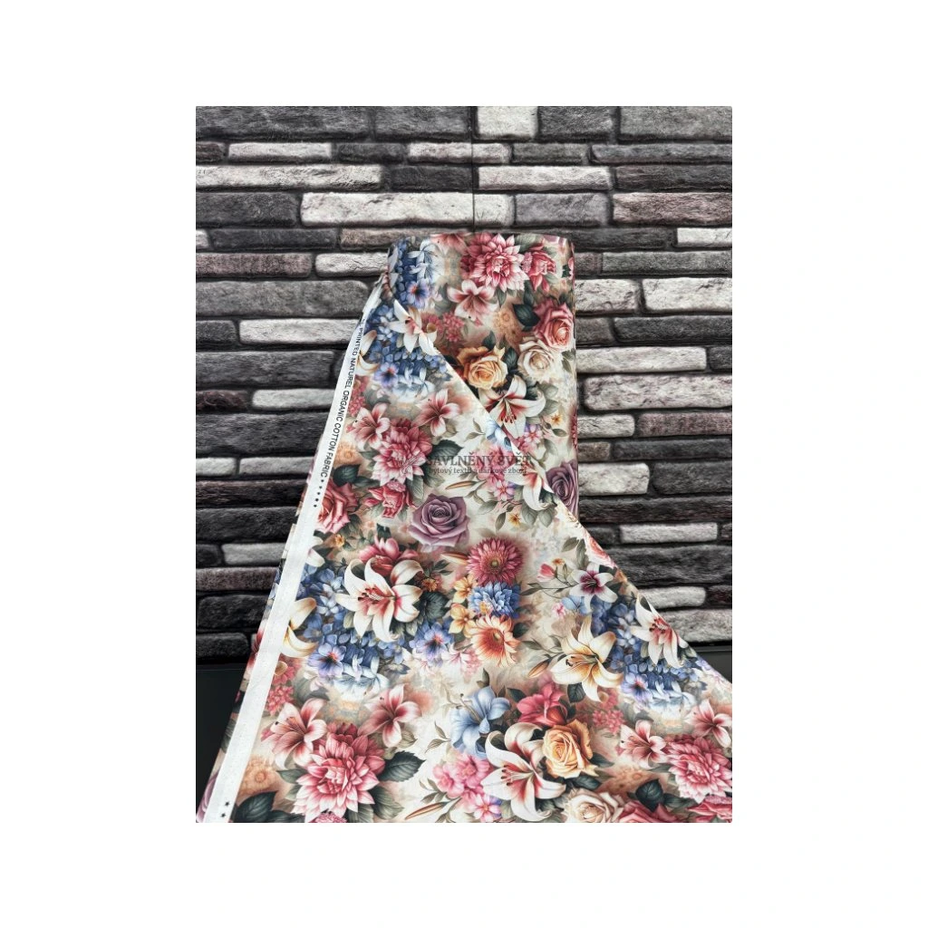 Toto luxusní bavlněné plátno s bohatým motivem rozkvetlých lilií a jiřin je výjimečnou tkaninou, která promění váš interiér v rozkvetlou zahradu. Díky 100% bavlněnému složení a nadstandardní šíři 240 cm je ideální volbou pro šití exkluzivního ložního prádla, které se stane dominantou každé ložnice. Detailní digitální potisk zajišťuje hloubku barev a jemnost vzoru, což této tkanině dodává elegantní a profesionální vzhled. Jako obchod pro každého vám navíc umožňujeme nakoupit více metrů za zvýhodněné ceny jako ve velkoobchodě, což oceníte zejména při šití větších sérií bytových doplňků.