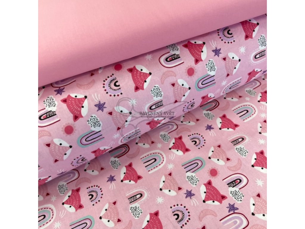 Bavlněná látka LIŠKA růžová šíře 240 cm