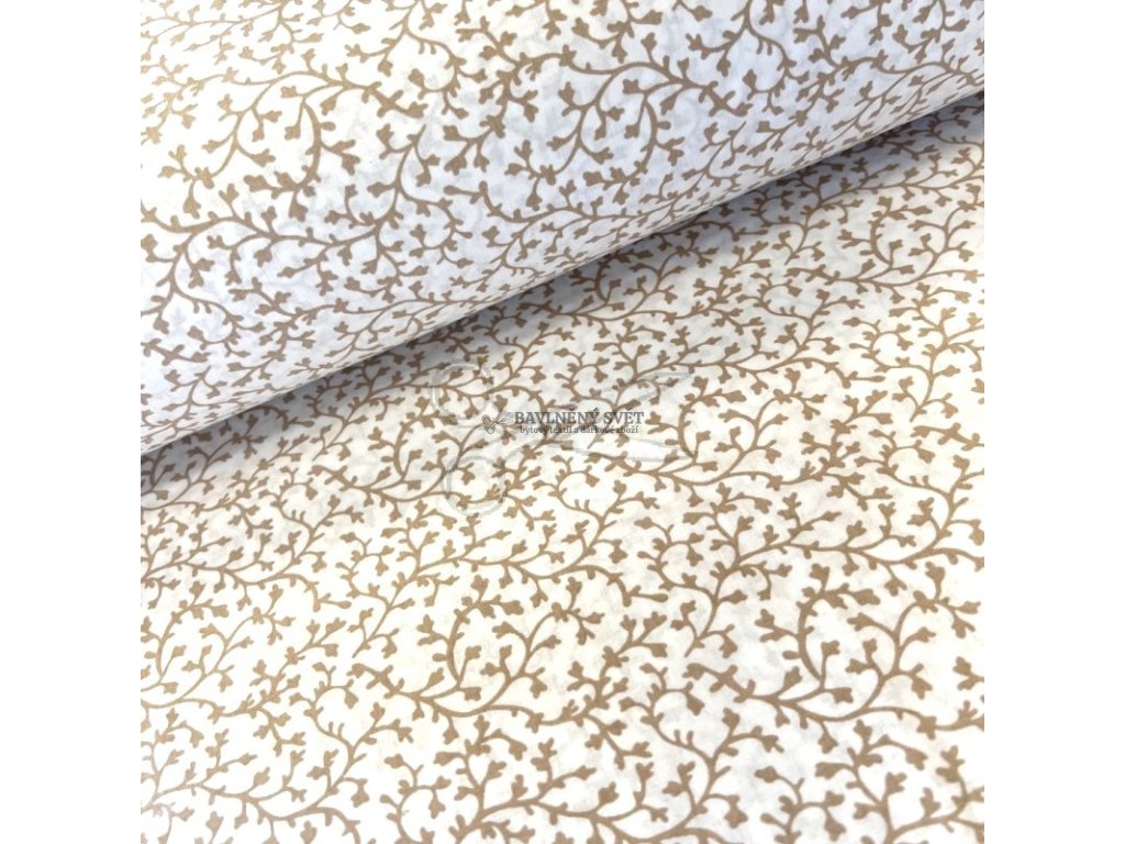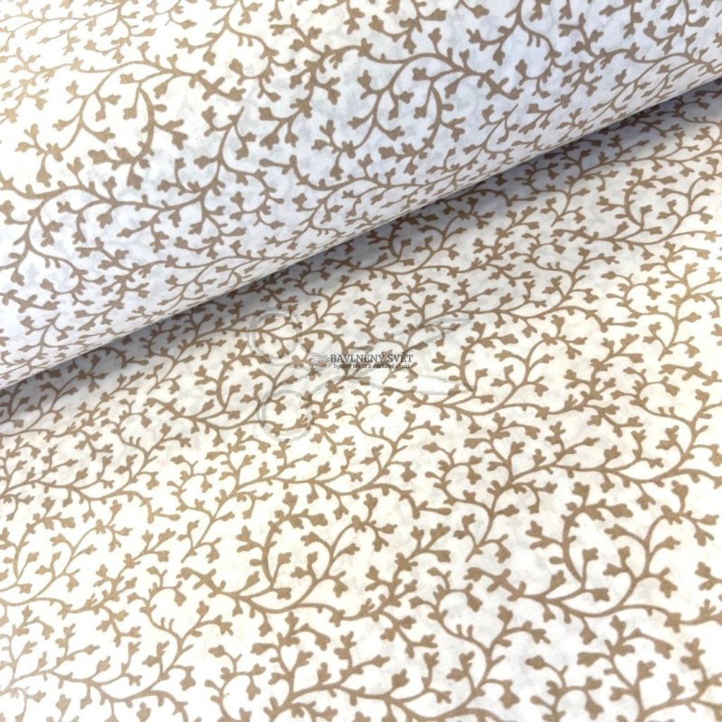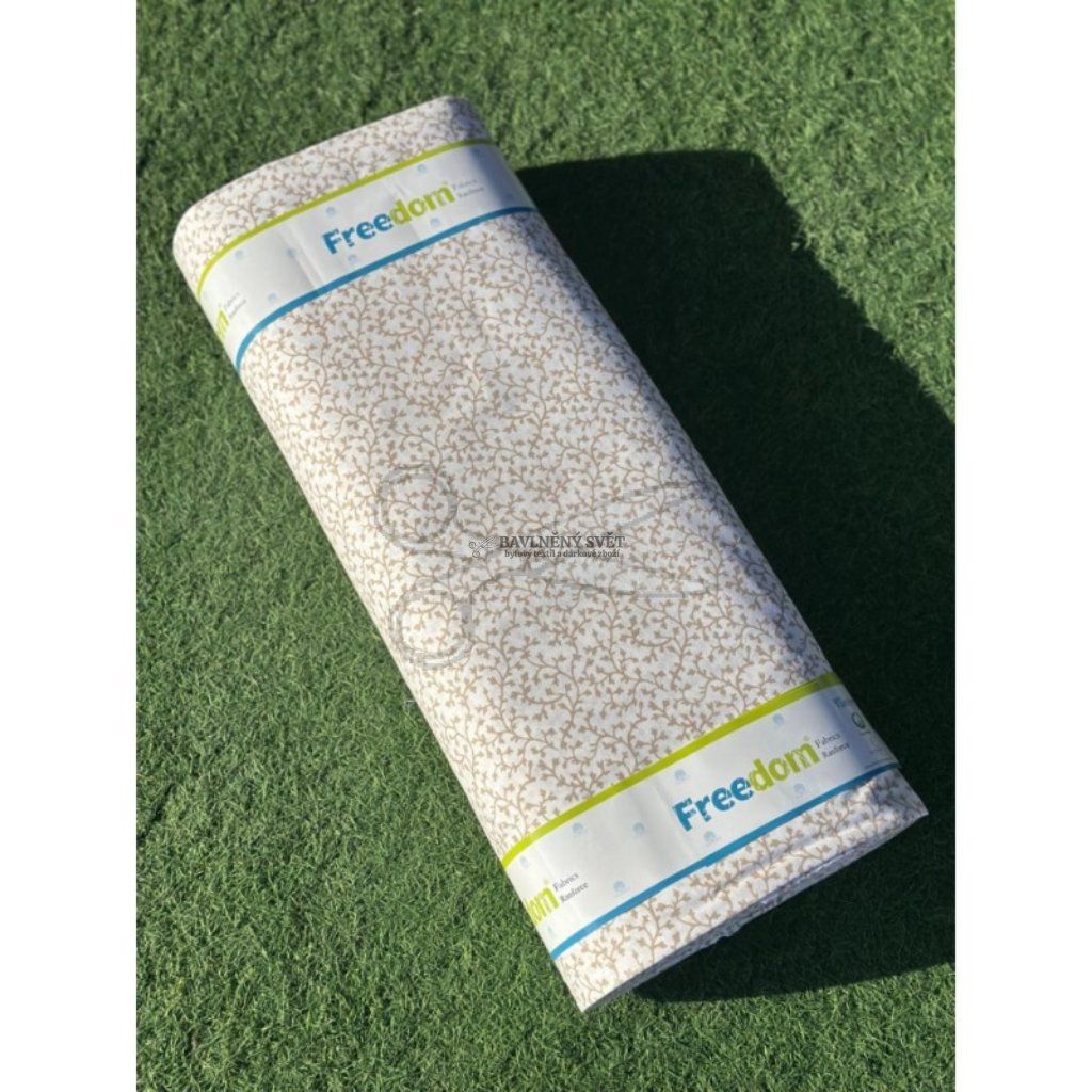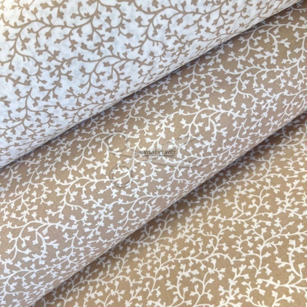 Bavlněná látka LÍSTEČKY kávové na BÍLÉM šíře 240 cm