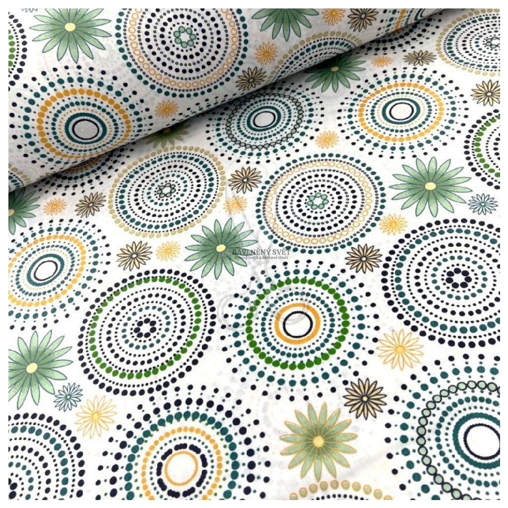 Bavlněná látka MANDALA zelená šíře 240 cm
