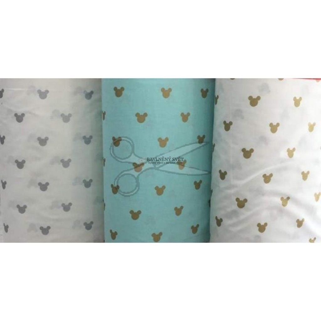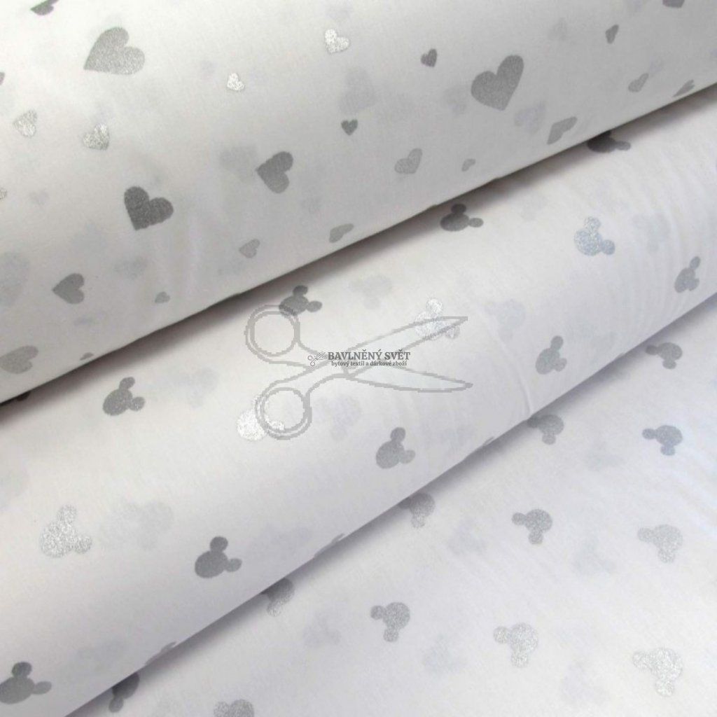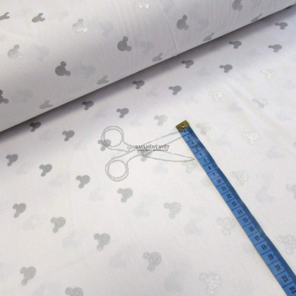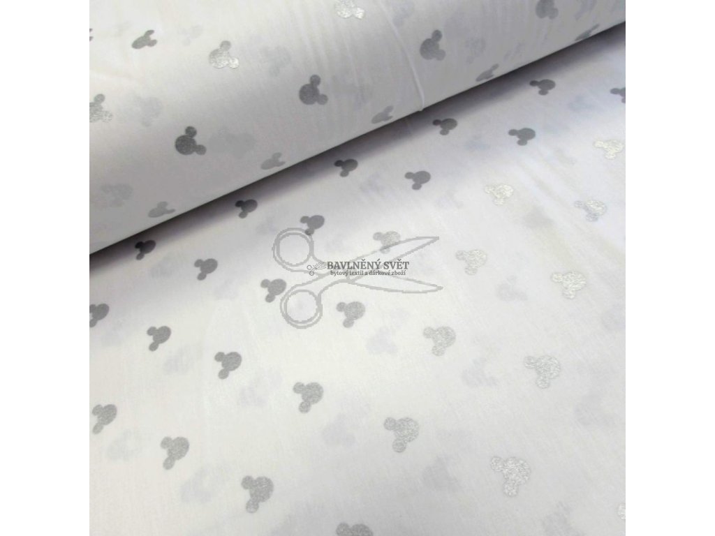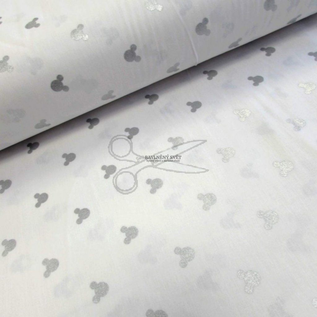 Bavlněná látka MICKEY stříbrný na BÍLÉM šíře 240 cm