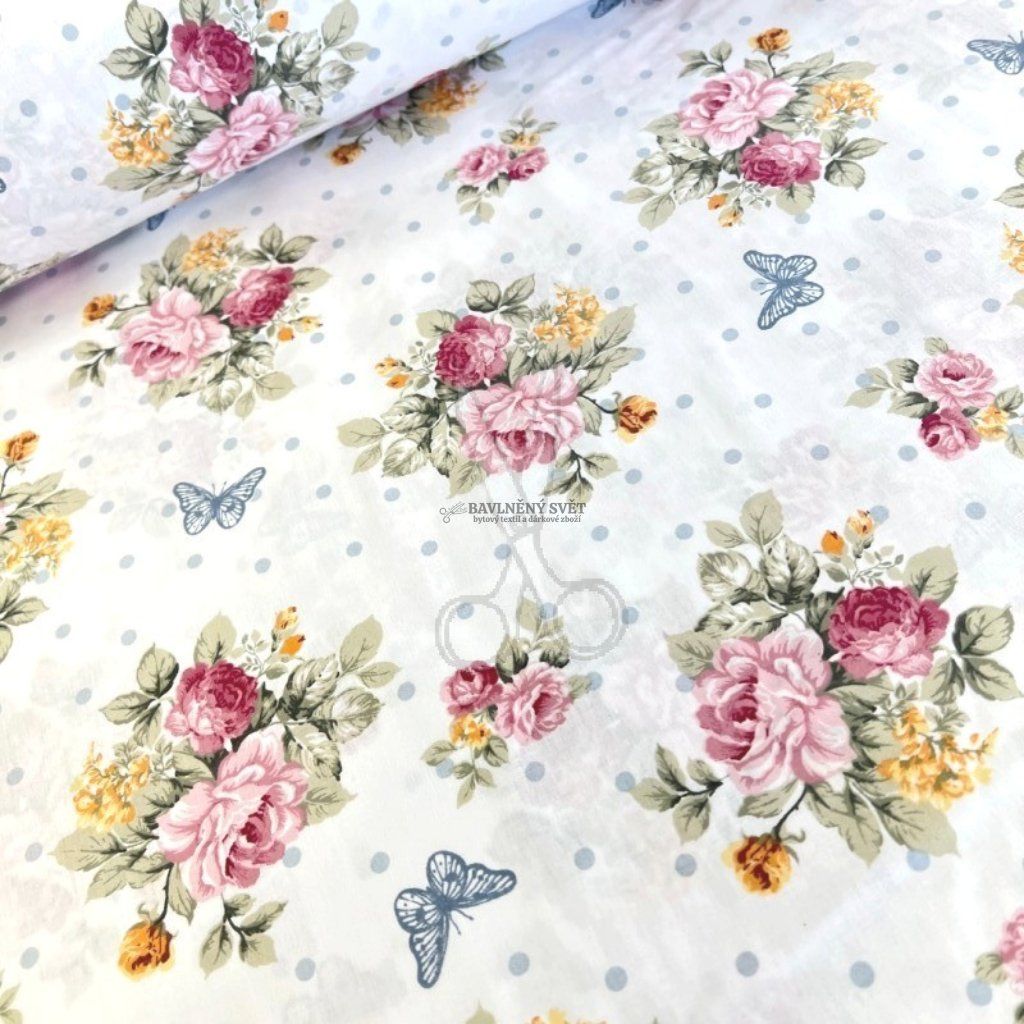 Kromě ložního prádla se motiv růží s motýly skvěle hodí na šití dekoračních polštářů, sedáků nebo stylových ubrusů, které rozzáří Váš interiér. Pokud hledáte levný a přitom kvalitní materiál pro své doplňky, toto plátno poslouží i jako vynikající podšívka do batohů a tašek, kterým dodá vnitřní pevnost a krásný estetický detail. Pevná vazba a barevná stálost zajišťují, že Vaše výrobky budou vypadat skvěle i při pravidelném používání.