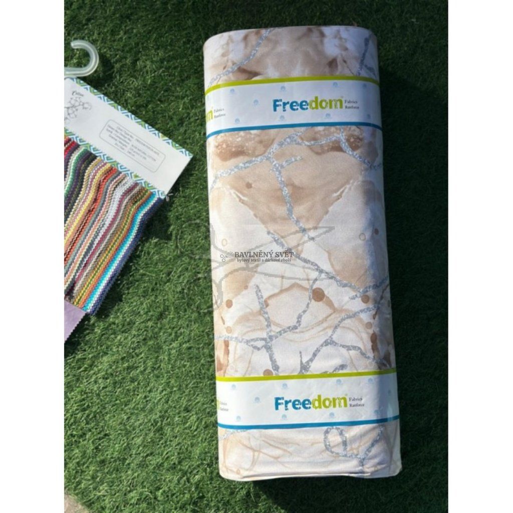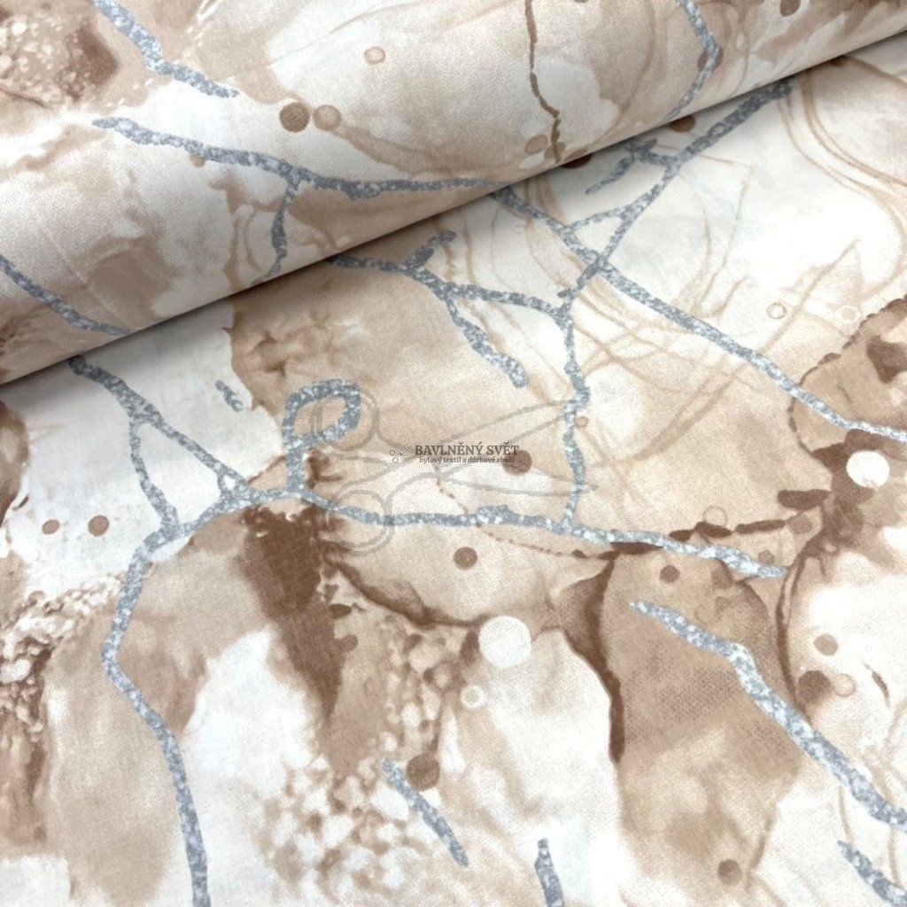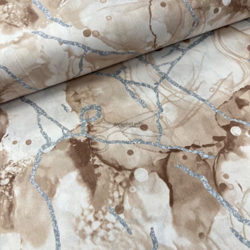 Vzor mramoru působí velmi čistě, což umožňuje látku využít v klasických i moderně laděných interiérech. Pokud se věnujete patchworku, toto plátno je perfektní pro kombinování s jednobarevnými látkami v hnědých a béžových odstínech, se kterými vytvoří harmonický celek. Látka je pevná, hustě tkaná a velmi příjemná na omak. Díky své odolnosti a výhodné ceně se skvěle hodí i jako kvalitní podšívka do batohů, tašek a kabelek, kterým dodá luxusní vzhled.
