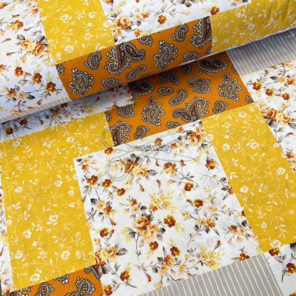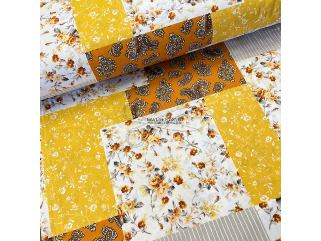 Bavlněná látka PATCHWORK okrový šíře 240 cm