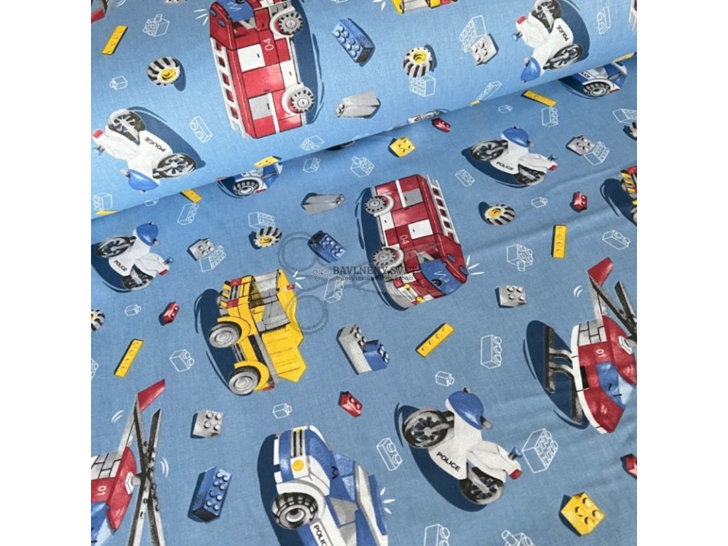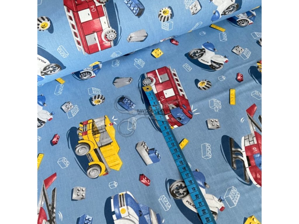 Bavlněná látka POLICIE a HASIČI na MODRÉM šíře 240 cm