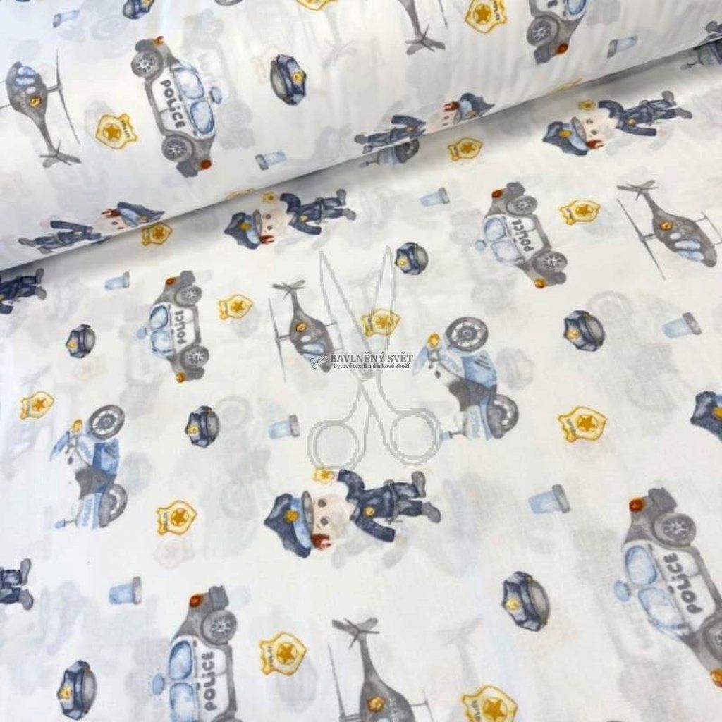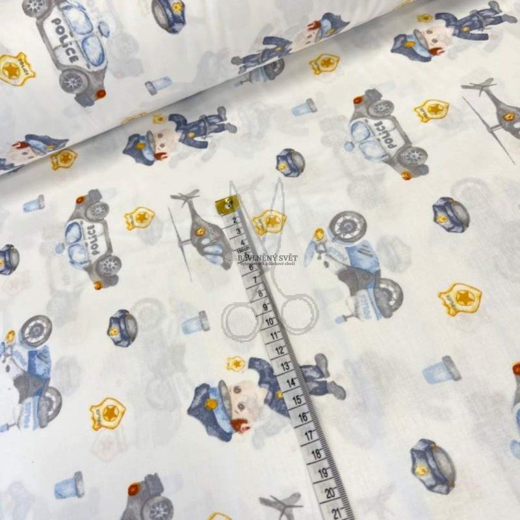 Toto plátno Vás na první pohled zaujme jasným bílým podkladem, na kterém krásně vyniknou barvy policejních aut a postaviček. Pro Vaše tvoření je zásadní, že vzor směřuje na šířku látky, tedy od jednoho pevného kraje k druhému, což je ideální pro zachování správné orientace motivu u delších střihů. Látka je pevná, hustě tkaná a velmi příjemná na omak, takže si zachovává svou kvalitu i při častém používání. Díky nadstandardní šíři 240 cm z látky snadno vyrobíte velké válce do postele nebo praktické kapsáře, které poslouží k důležitému zateplení od studené zdi a zároveň jako skrýš pro všechno policejní vybavení.
