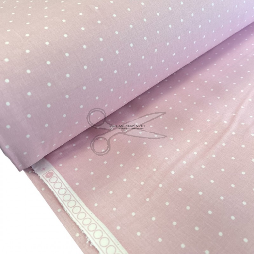 Bavlněná látka PUNTÍČEK bílý na RŮŽOVÉM šíře 240 cm