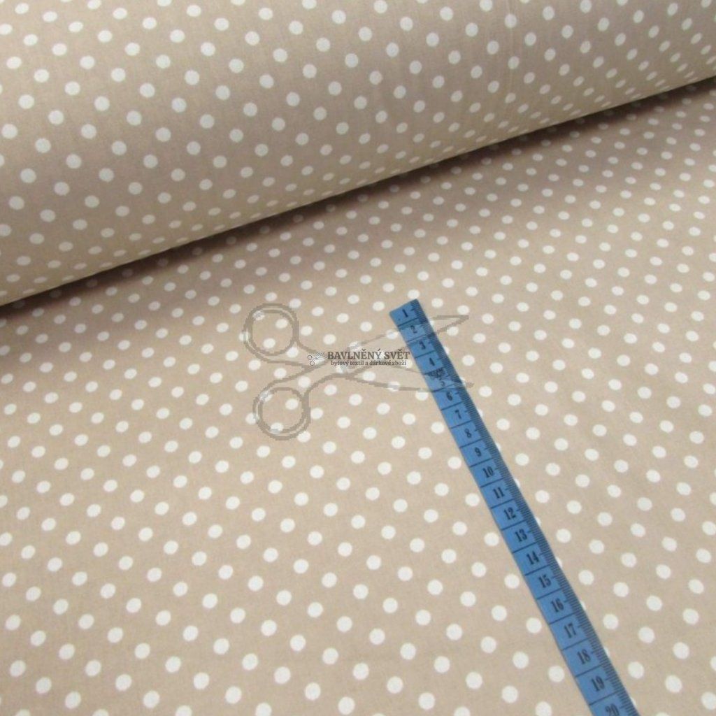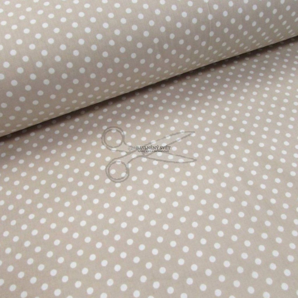 Bavlněná látka PUNTÍK 0,6 cm BÍLÝ na HNĚDÉM šíře 240 cm