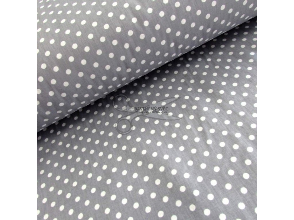 Bavlněná látka PUNTÍK 0,6cm BÍLÝ na ŠEDÉM šíře 240 cm