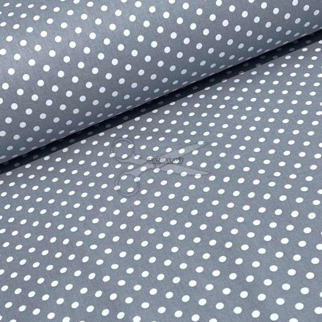 Bavlněná látka PUNTÍK bílý na ŠEDÉM šíře 240 cm