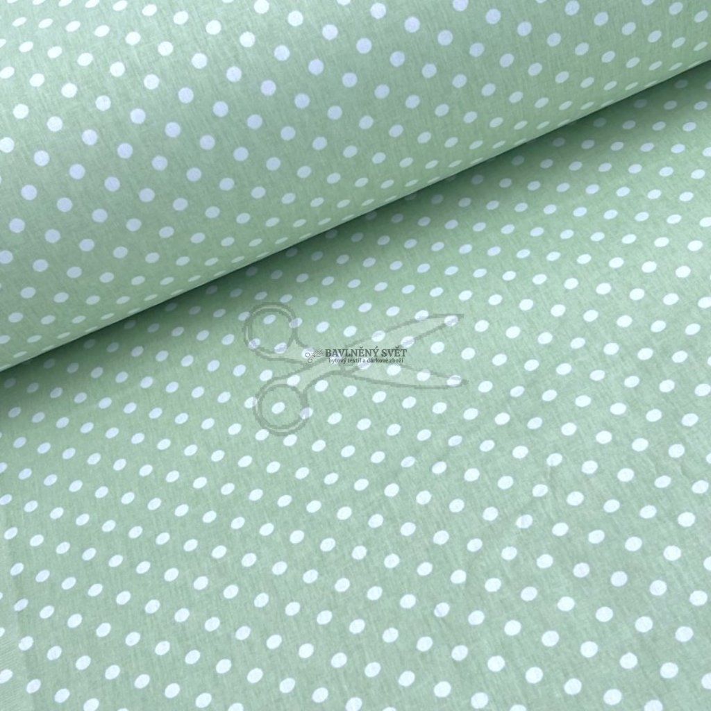 Bavlněná látka PUNTÍK bílý na ZELENÉM šíře 240 cm